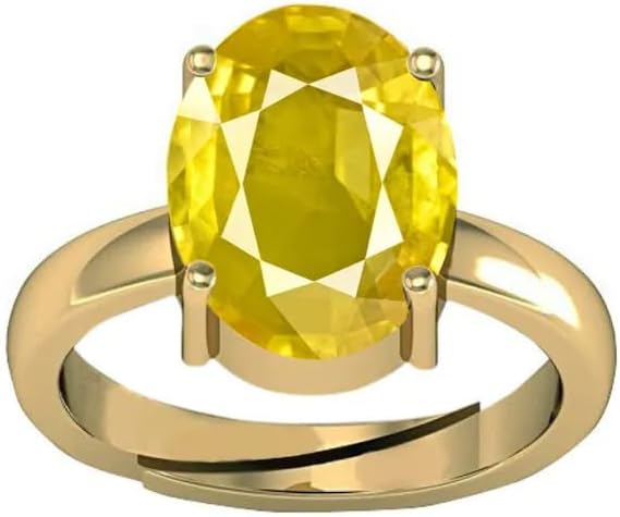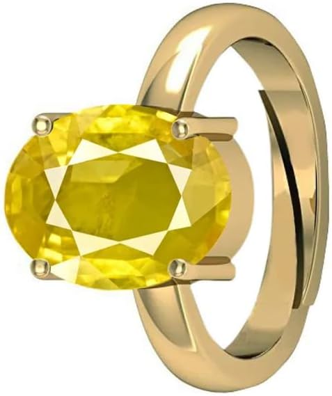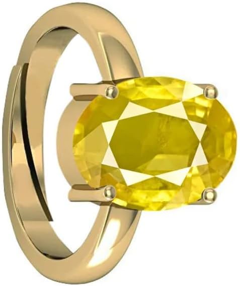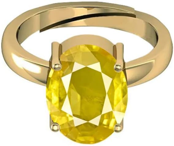 10.00 Carat Pukhraj Stone Original Natural Yellow Sapphire Gemstone Gold Plated Anguthi Adjustable Ring Enhance your elegance with this stunning 10.00 Carat Pukhraj Stone (Yellow Sapphire) gemstone ring, designed to captivate and bring out your natural beauty. The ring features a high-quality, original, and natural yellow sapphire—a gemstone known for its vibrant color and spiritual significance. The gold-plated finish adds a luxurious touch, making this ring not only a beautiful accessory but also a symbol of timeless sophistication. The adjustable anguthi ensures a comfortable fit for various finger sizes, making it a perfect gift for any occasion. Whether you're looking to add a touch of glamour to your daily wear or searching for a meaningful gift, this Yellow Sapphire ring is an excellent choice. The Pukhraj stone is known for its astrological benefits, believed to bring prosperity, success, and positivity to its wearer. Product Features: Stone Type: Natural Yellow Sapphire (Pukhraj) Stone Weight: 10.00 Carat Ring Material: High-quality gold-plated metal Design: Adjustable Anguthi for a perfect fit Occasion: Ideal for daily wear, parties, or special events Astrological Benefits: Known to enhance wisdom, wealth, and well-being Indulge in this unique, elegant, and spiritually enriching piece of jewelry today!