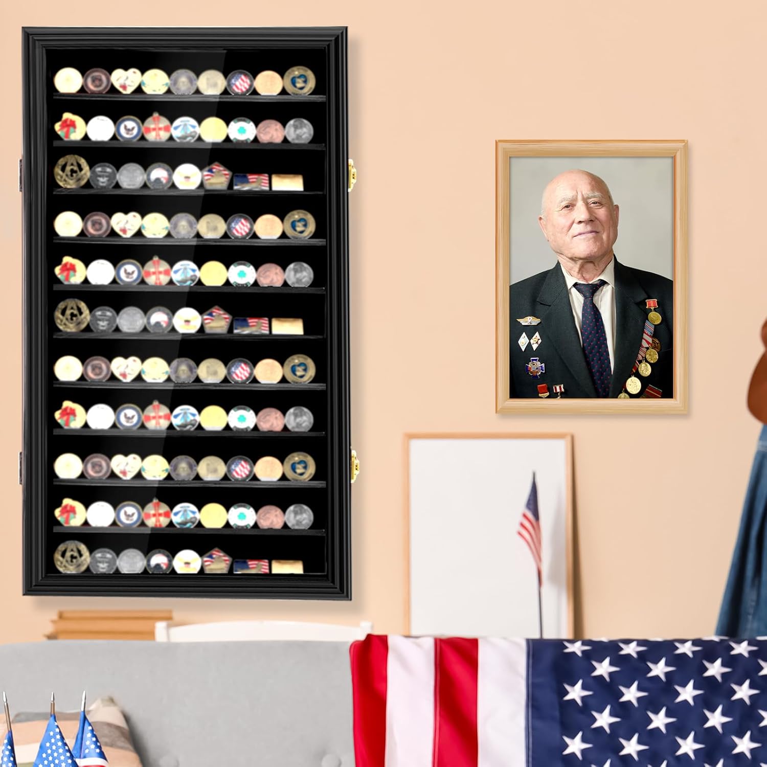 Features: Beyond functionality, the medal holder for wall adds a touch of elegance to your interior. Its timeless design harmonizes with various decor styles, transforming your medals into a beautiful conversation piece. Easily rearrange medals to fit personal preferences, allowing for a personalized showcase that reflects your accomplishments. Specifications: Material: solid wood Color: black Size: about 23.62 x 19.69 x 1.77 inches/ 60 x 50 x 4.5 cm Package includes: 1 x Medal display case 1 x Screwdriver 2 x Expansion screws Notes: Manual measurement, please allow slight errors on size. The color may exist a slight difference due to different screen displays