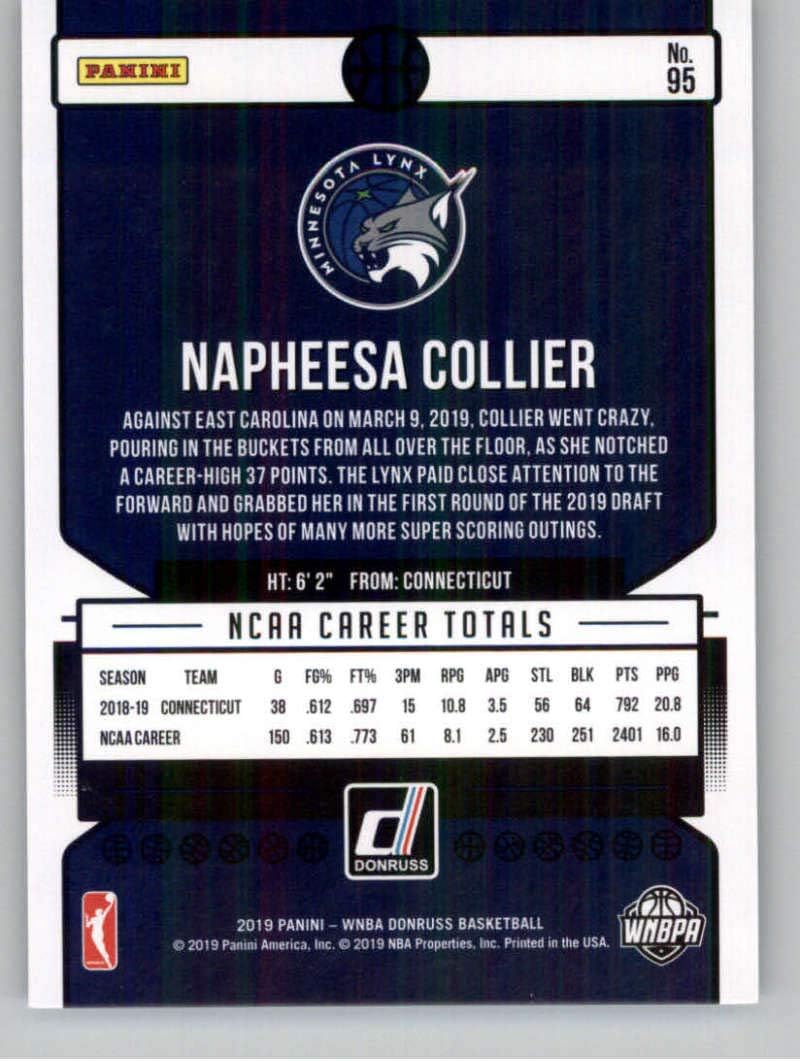 2019 Donruss WNBA #95 Napheesa Collier Minnesota Lynx Rated Rookie RC Official Panini Basketball Card