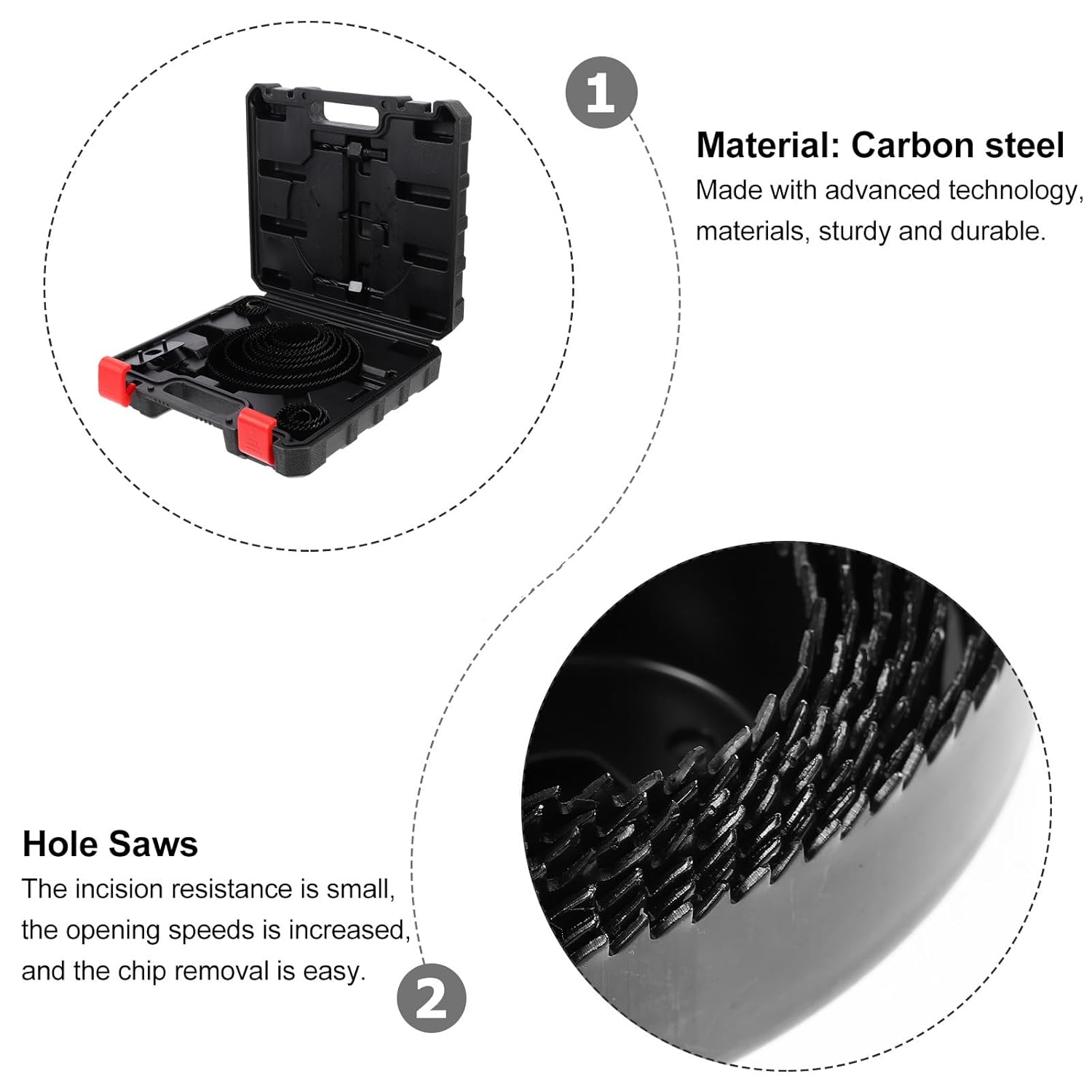 Package List 13 x Saws Blades 2 x Mandrels 3 x Drill Bits 2 x Installation Plates 1 Characteristics - Size: 26.00X24.00X7.00cm/10.22X9.43X2.75 inch. - Color: Black. -Product Info:Hole saw set - Material: Carbon steel. - Strict quality inspection system ensures you have a product Woodworking Hole Opener. - Perfect for furniture drilling work. It will greatly the efficiency Wood Drill Bit. - The excellent workmanship of our product will bring you a Heavy Duty Drill Bit. - It is suitable for industrial hinge installation, wood processing and maintenance, model making, installation of spherical door tips, drawer tips, etc Hole Cutter. - Easy to install, easy to use, only needs to be installed in the ordinary hand drill that can be used Hard Drill Bit.Goods DescriptionHole Opener Suitable for cutting holes in a variety of materials including wood, plastic, etc.Drill Bit It can cut holes efficiently, help you to do your great work.Woodworking Hand Tool This is woodworking drill bit, made with hard material, sturdy to use