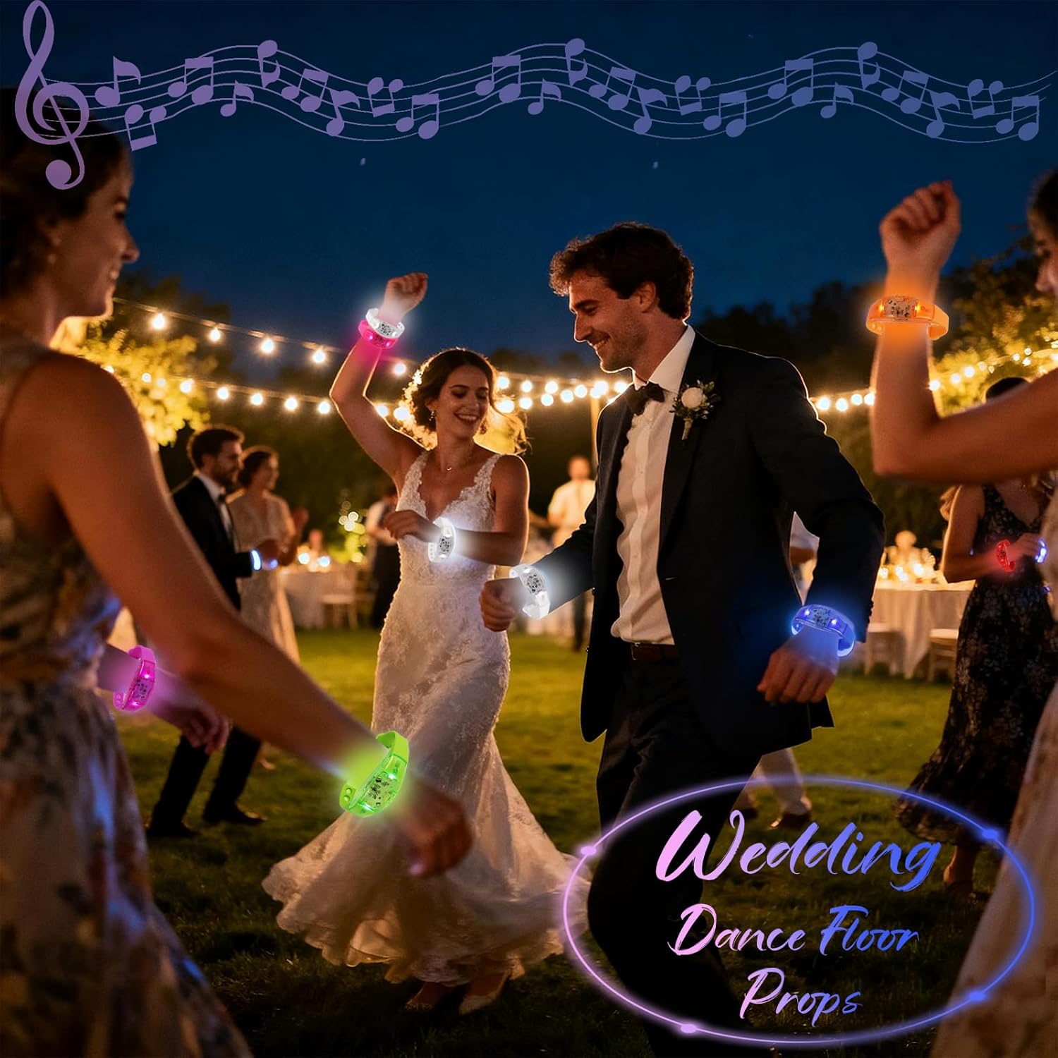 Elevate your party with our interactive Sound Activated LED Bracelets! This 24-piece set includes 8 exciting colors: Red, Orange, Yellow, Green, Blue, Pink, Purple, and White. The special sound-reactive mode makes these bracelets light up and flash to music, creating a synchronized light show. Made from soft silicone with an adjustable snap closure (fits wrists 6cm–7.5cm / 2.36"–2.95"), these music activated wrist bands offer a customizable fit. Perfect for concerts, festivals, weddings, and themed parties, these light up bracelets sync with music to turn any event into an unforgettable, rhythmic experience.
