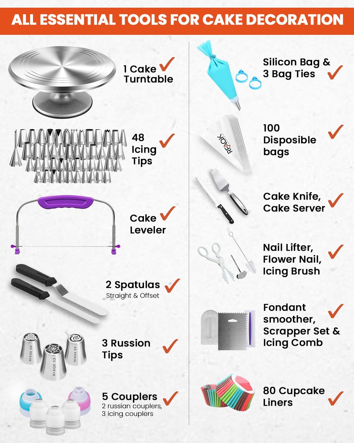 250 PCs Aluminum Cake Decorating Tools Kit with 12" Metal Turntable & Knife set-48 Numbered Icing Tips-3 Russian Piping Nozzles-Straight & Angled Spatula-Cake Leveler& Baking Supplies Tools Food Warming Mat for countertop- Full Surface Heating Food Warmer Trays for Buffets Party with Multiple Temperature Settings,Heating Quick,Portable Design, Timed Function for Your Family