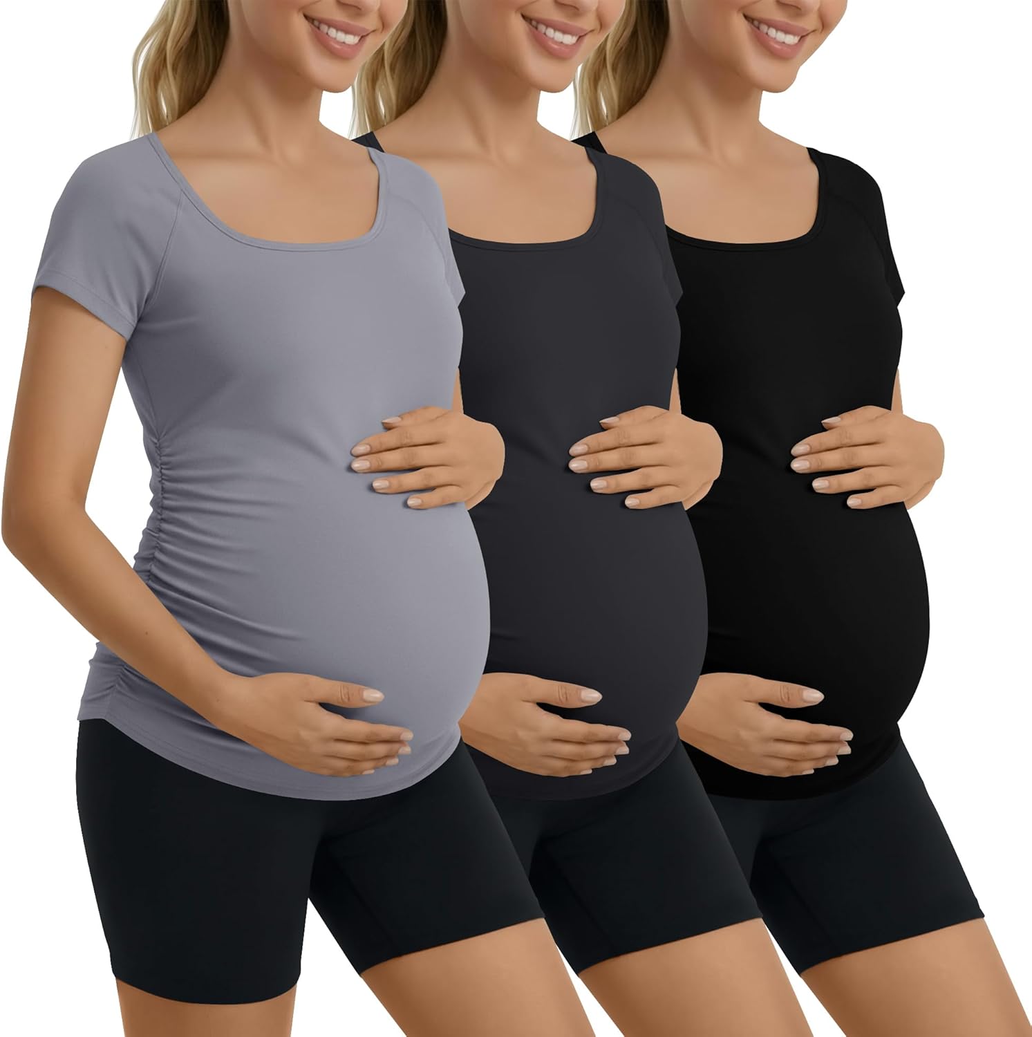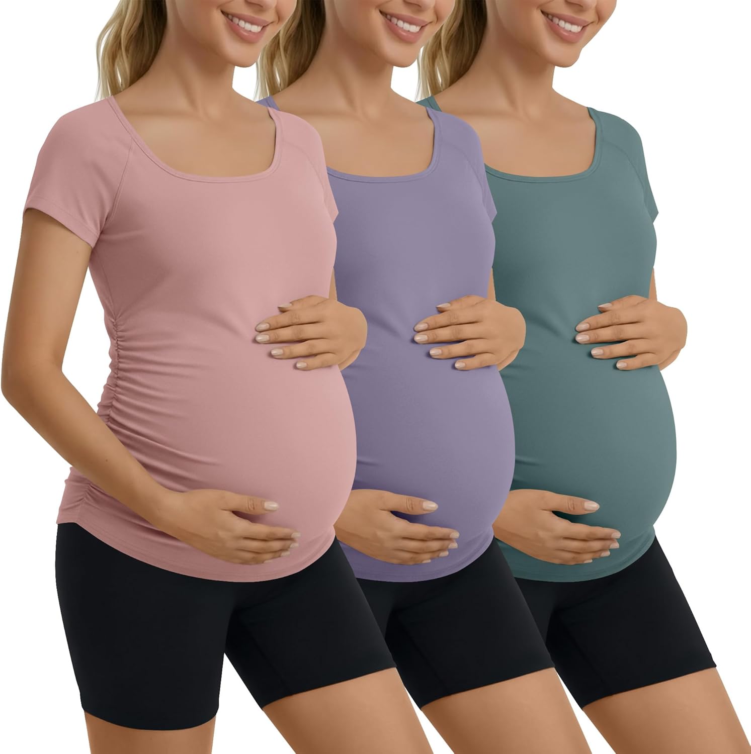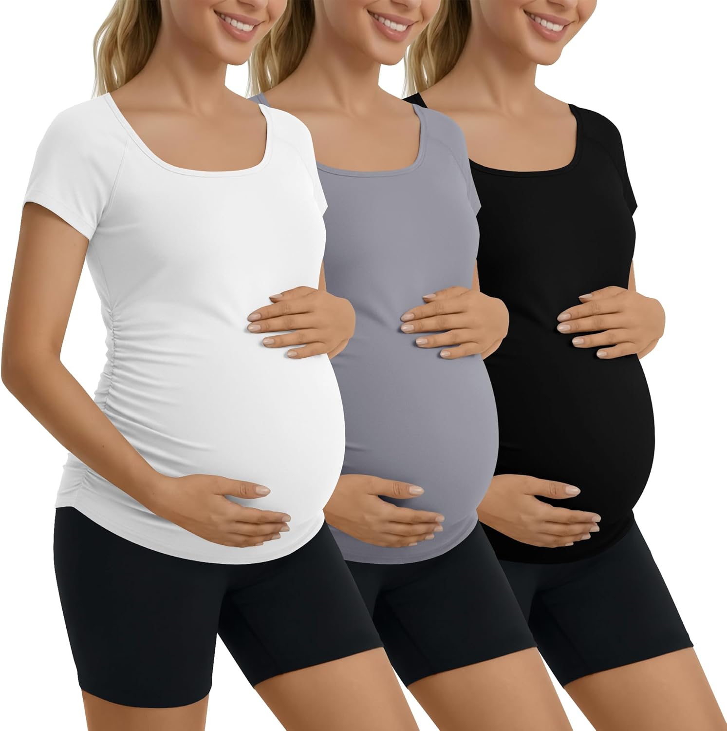 Features: Our pregnancy tops are crafted from soft and lightweight fabric, making them ideal for expectant mothers to wear during spring and summer. "These cute maternity tops are suitable for a variety of occasions, including prenatal checkups, postpartum care, yoga, dates, workout, casual outings, gatherings, daily work, vacations, and shopping. They are designed to support you throughout the entire journey—pregnancy, childbirth preparation, and the postpartum period. " Fabric: 92% Polyester, 8% Spandex Notes: Manual measurement, please allow slight errors on size. The color may exist a slight difference due to different screen display