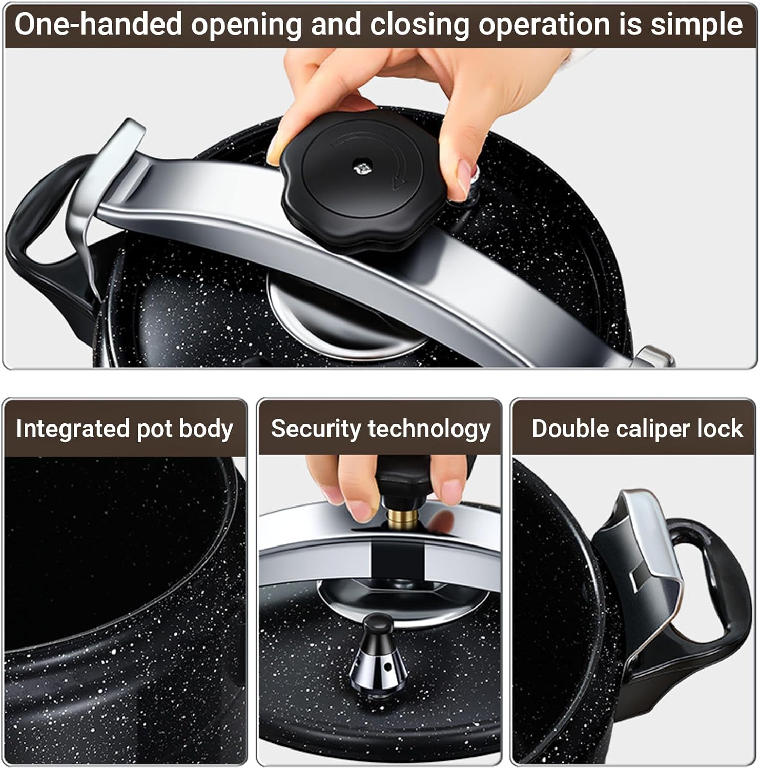 Upgrade Your Cooking with the Safest, Fastest Pressure Cooker!Tired of slow cookers or flimsy pots that dent easily? Our heavy-duty aluminum alloy pressure cooker combines durability, safety, and versatility to simplify your cooking—whether you’re meal-prepping for the week or serving a crowd!Why You’ll Love It:✔ Effortless Cleanup – The polished interior resists stains and food buildup. A quick rinse is all it needs!✔ Restaurant-Grade Performance – The thickened base eliminates hot spots, preventing burnt food. Even a beginner can cook tender meats, fluffy rice, or broths like a pro!PRODUCT DETAILSName: Pressure Cooker/Olla de PresiónMaterial: AluminumColor: SilverStove Compatibility: Universal (Gas, Induction, electric, ceramic)Sizes:4.2Qt/4L,5.3Qt/5L,7.4Qt/7L,9.5Qt/9L,11.6Qt/11L52.8Qt/50LPacking: Carton BoxNOTE Before use, check the pressure limit valve to ensure the exhaust hole is unobstructed. Only use water or other liquid-based cooking mediums that can generate steam. Follow food capacity guidelines carefully based on the ingredients' characteristics. If you have any questions during the shopping process, feel free to contact us via email. We are always here to provide you with prompt and helpful service.