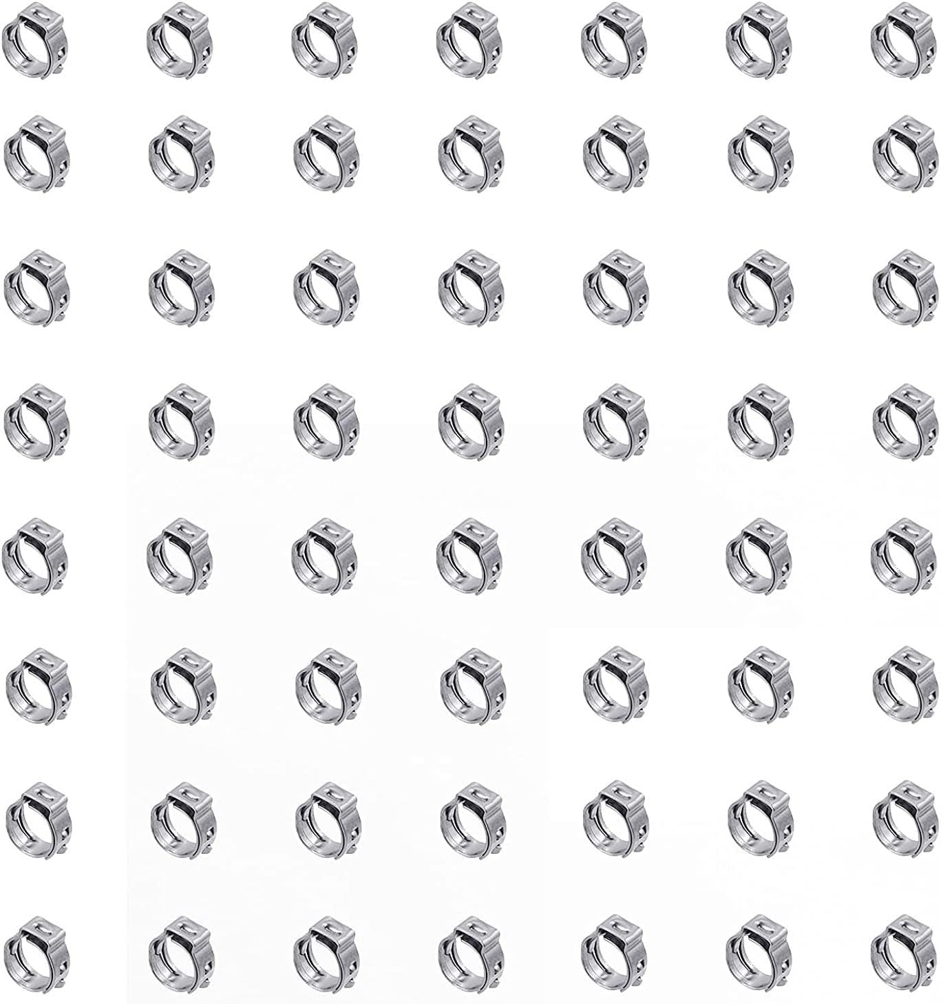 🍭 Specification: ✔️ Item Name: 3/16" PEX cinch clamps ✔️ Item Size: 3/16 Inch ✔️ Quantity: 40 Pieces ✔️ Clamp Range: 6mm-7mm ✔️ Material: 304 Stainless Steel ✔️ Product Type: Single Ear Hose Clamps 🍭 Feature: ✔️ High-quality 304 stainless steel single ear clamps. ✔️ Design - there is no protrusion and gap in the inner ring. ✔️ Narrowband design providing a more concentrated sealing pressure. ✔️ Edge polished smooth, avoid damage to the hose. ✔️ Cochlear design ensures continuous clamping during temperature changes or machine vibrations. ✔️ High quality single ear clamps are very easy to install and store. 🍭 Package included: ✔️ 40 Pieces 6mm-7mm Singe Ear Hose Clamps 🍭 Note: ✔️ Warning: small parts, keep away from children and kids.