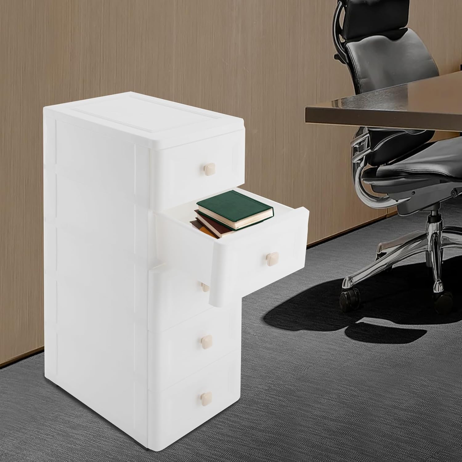 Introducing our versatile Drawer Storage Organizer, designed to enhance your home organization while blending seamlessly into any space. Ideal for baby rooms, corridors, offices, kitchens, living rooms, bedrooms, study areas, bathrooms, apartments, school dormitories, and hotels, this storage solution helps you declutter and create a tidy environment. Crafted from durable PP material, this organizer features a sleek white finish with a frosted process that not only looks modern but is also easy to maintain. The unique shell-shaped handle adds a stylish touch, making it simple to open and close drawers. With five spacious tiers, each capable of holding up to 10kg (22lbs), this organizer is perfect for storing a variety of items, from clothes and toys to office supplies and toiletries. The free-standing design allows you to place it wherever you need extra storage, while the overall dimensions of 20.32*40.64*83.82 cm (8*16*33 in) make it a compact yet efficient solution for maximizing your space. Assembly is required, but with the included English manual and all necessary accessories, setup is straightforward and quick. Please keep in mind to check the dimensions before ordering to ensure a perfect fit in your designated area. To maintain the longevity of the product, we recommend adhering to the specified weight capacity for each tier. Minor color variations may occur due to lighting during photography, and slight measurement discrepancies (1-3 cm) may exist.