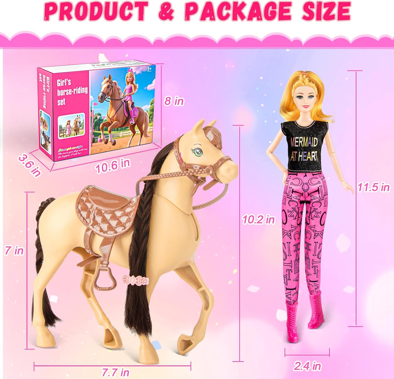| Size | 11.5 Inches (Doll), 1 Horse |