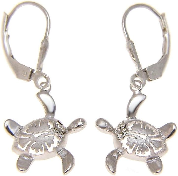 925 sterling silver 13.70mm Hawaiian honu turtle hibiscus cz leverback earrings