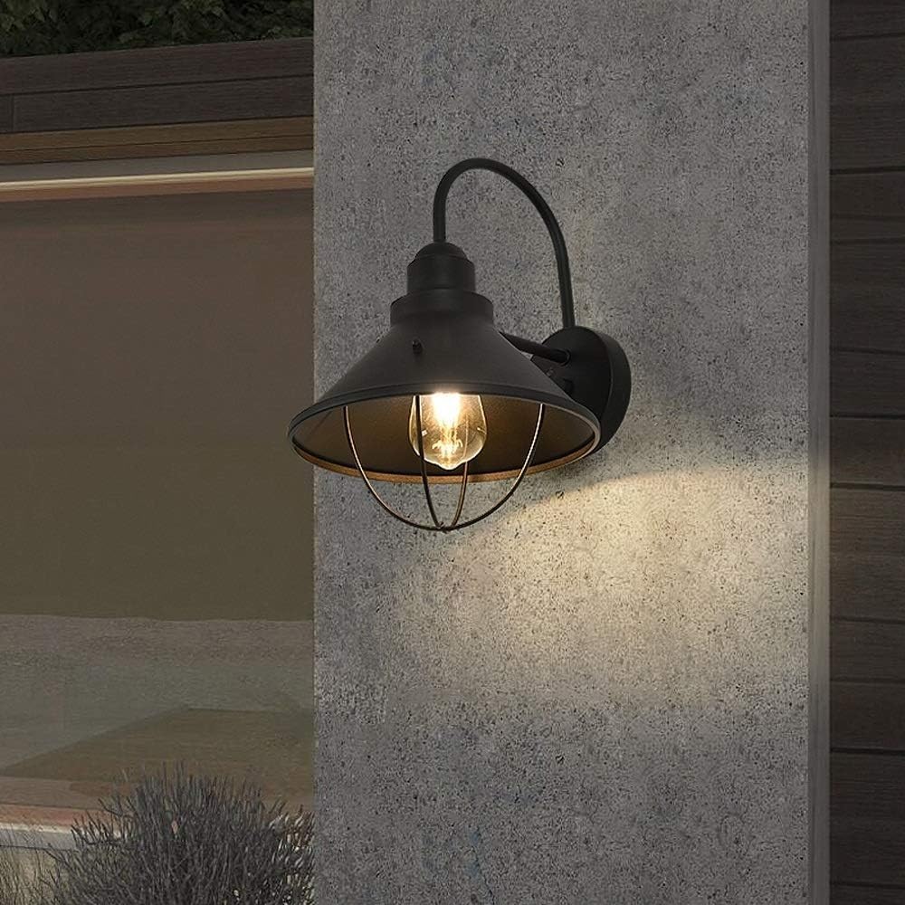 Package List:1 x Outdoor wall light (Not including bulb)1 x Installation AccessoriesSpecifications :Size: 35cm(H) x 26cm(W) x 30cm(E) Material: Wrought ironShade Material: Wrought ironColor: Matte blackBase: E27Light source type: Incandescent bulbs, CFLs and LED bulbs.Power Source: Hard-wiredMaximum Compatible Wattage: 60 wattsVoltage: 110-240 voltsApplication: outdoor, stairs, balcony, courtyard, garden, etc.Place of production: Made in China.Pay attention:1. Make sure cut off power support before installation.