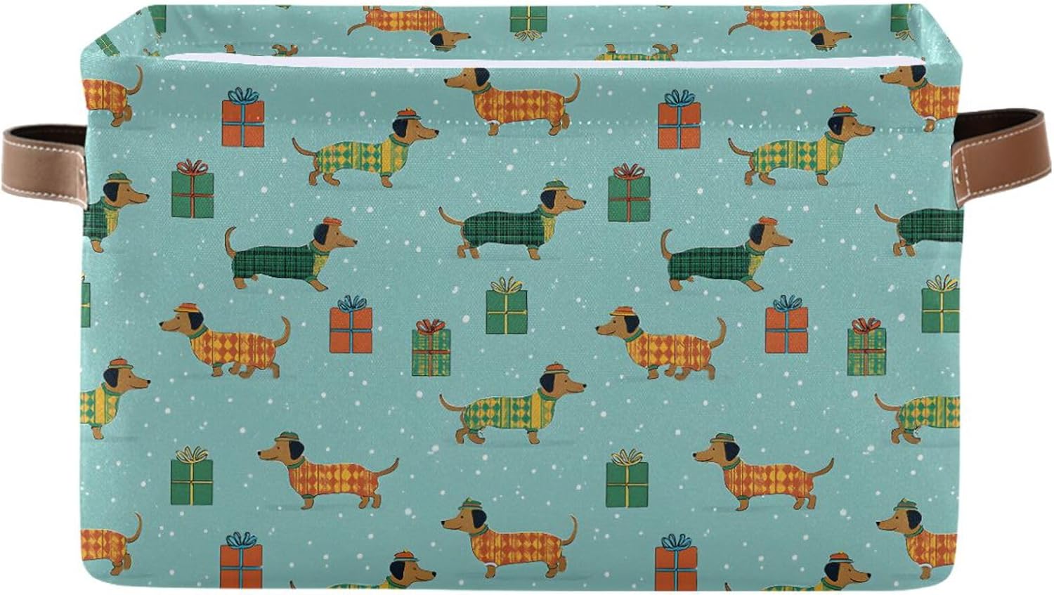 Storage BasketMaterial: Thick canvas + 300D PE waterproof fabric,.Size: 14.2"Lx 10.2"Wx 8.3"H (36 x 26 x 21 cm).Design1.Enough space to store items like hampers, comforters, duvets, throw pillows, cushions.2. The basket organizer is easy to clean, just wipe with a damp sponge or cloth.Function1.Use it as a clothes storage basket, it can hold a lot of clothes.2.Decorative storage basket is suitable for living room, bathroom, utility rooms, playroom, dorms, condos, laundry room, hallway.3.If you are still looking for storage basket, these basket are a nice choice for you.