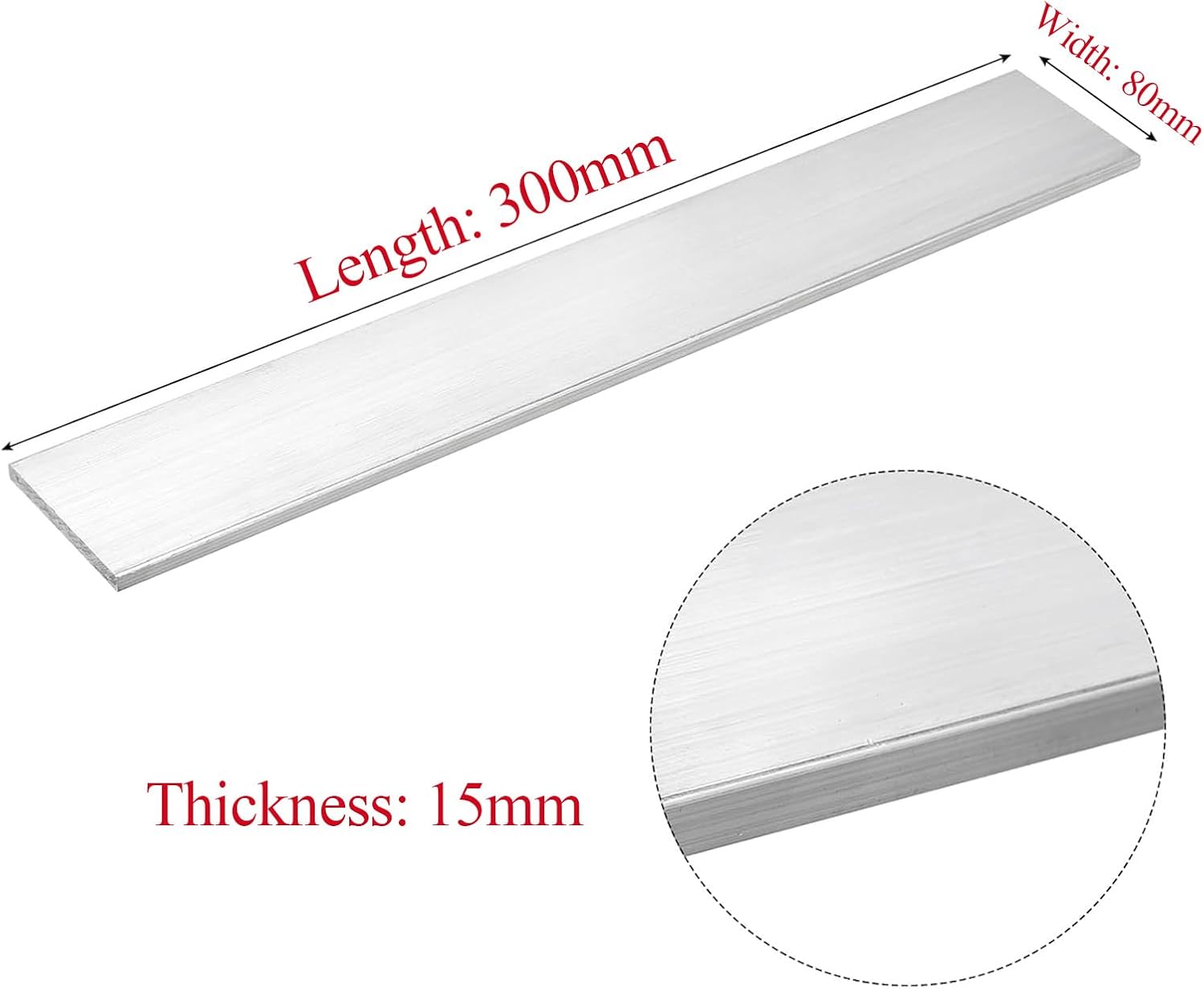 Features: - Aluminum flat bars are lightweight, easy to carry and process. Not only do they make projects easier to handle, but they also help reduce the overall weight burden.- These aluminum flat bars are easy to cut, weld and bend, allowing you to easily customize the shape and size to your specific needs.- Great for custom fabrication project such as DIY: Architectural sections, frames, lightings, railling, ladders, furniture, fences, flooring.Specification:- Material: 6061 Aluminum- Color: Silver- Size: 15×70×300mm/15×80×300mm/15×100×300mmProduct packaging: 1 Pieces x Aluminium Flat BarWarm Tip:- Please allow measurement error +/- 0.2 inches due to manual measurement.- The light of photography and different screens may make the color of the project in the picture slightly different from the real project.