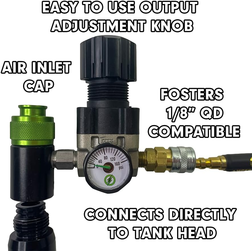 The Amped Airsoft HPA SLP Regulator ARX20 Setup is a lightweight, compact air rig system designed for serious airsoft players. This Super Low Pressure regulator features a robust single-stage design that allows easy PSI adjustment with a simple twist of the knob, or can be locked in place using the tourney lock notches. Compatible with any SLP regulated HPA tank outputting 300 PSI or lower, this system delivers consistent performance with a maximum output pressure of 120 PSI. Each regulator is hand-crafted and tested in Pittsburgh, Pennsylvania, ensuring reliability on the field. The setup includes the latest state-of-the-art Amped Line rated for up to 200 PSI and comes with everything needed to connect your PR-15 or Fusion Engine to your SLP tank. This air rig takes up less room in your pack compared to traditional setups while delivering the same performance at under half the price of most competitors. Easy to maintain and built to withstand intense milsim gameplay, it includes a 1-year warranty on the regulator and a lifetime warranty on the Amped Line against manufacturing defects.