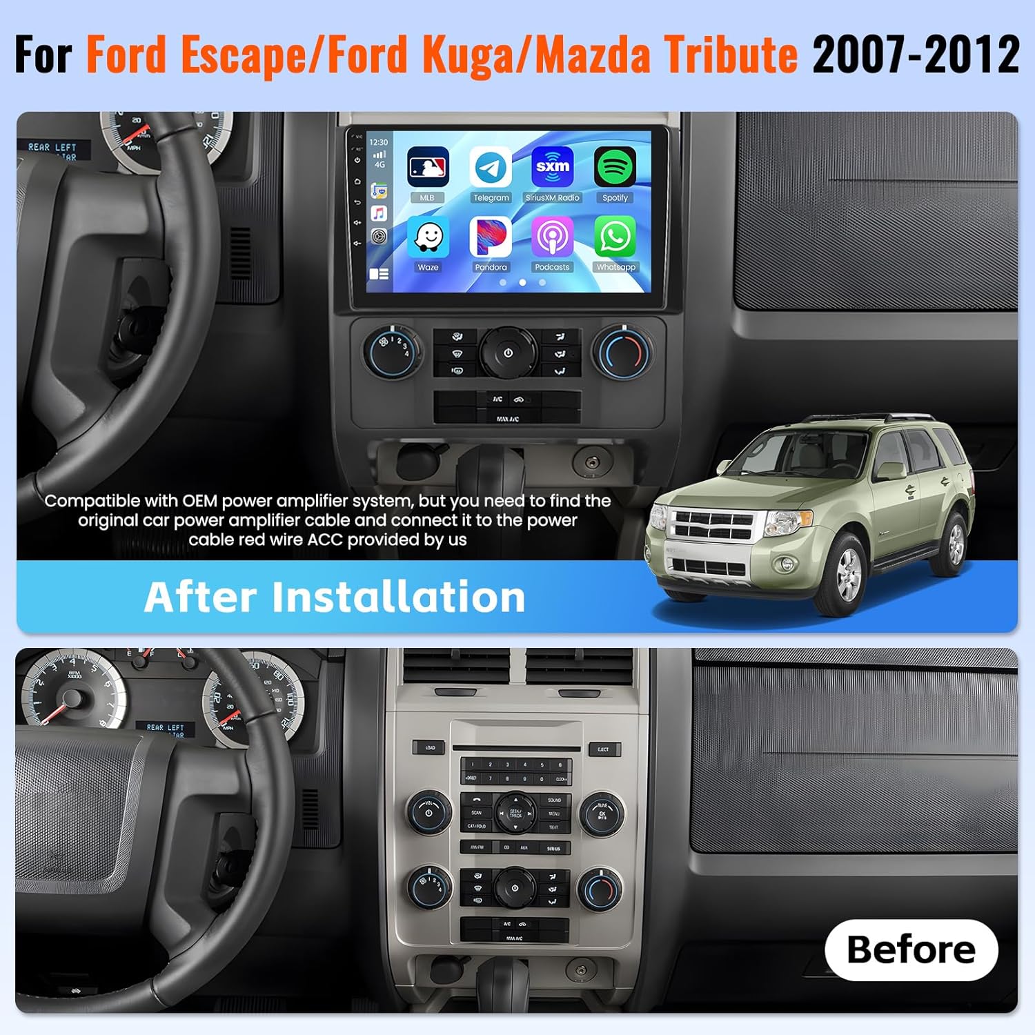 | BuiltIn Media | for Ford Escape/Ford Kuga/Mazda Tribute Android Stereo, Power Cable, CANBUS Box, Radio Antenna Cable, Dual RCA Cable, GPS Antenna, AHD Backup Camera, External Microphone, Rear Camera Input Cable, Dual USB Cable, Installation Tool & Accessories |