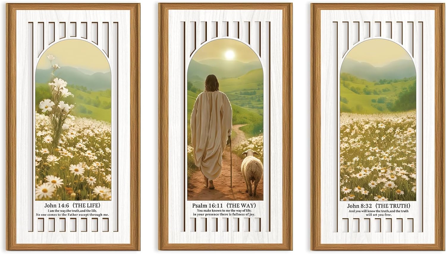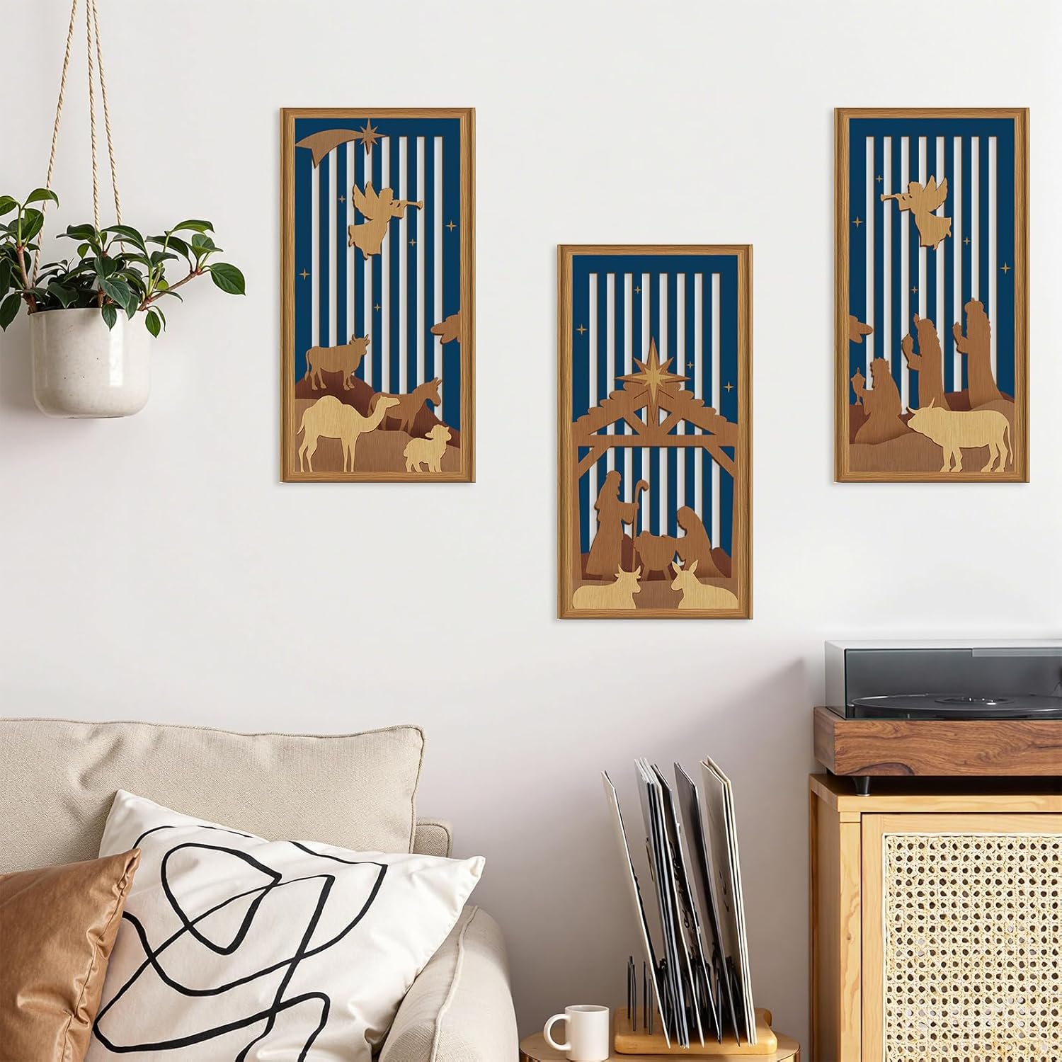 Boho Christian Nativity Scene Wood Wall Art Birth of Jesus Wall Decor Catholic Hanging Art Christmas Religious Artwork for Church Living Room Bedroom 7.9 x15.8 Inch
