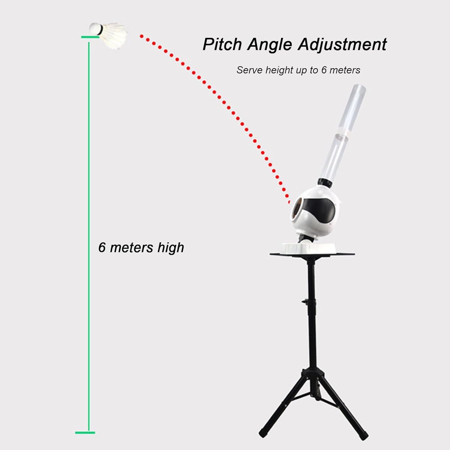Do you want your child to be able to play badminton even alone and have a great time? This portable badminton serve machine is suitable for beginners, can be played by one person, no need to practice, in the fun, enhance the child's good heart, exercise patient.Badminton Shuttlecock MachinePerfect Training MachineBadminton Server Badminton Trainer RobotAutomatic Badminton Serving MachineBadminton Shuttlecock Machine ChildBadminton Training EquipmentPortable Badminton Serve MachineFunction:Fixed point serving trainingOne-key start and stop functionElevated serve trainingRestore memory functionRandom serve trainingLong and short serveServing distance adjustmentsquare ball serveServe time adjustmenthorizontal swing serveAutomatic Shuttlecock Robot Shuttlecock Machine, Machine Automatic Shuttlecock Launcher, Badminton Serve, Shuttlecock Serve Robot, Outdoor Backyard Garden Trainings Equipment, Ball Machine, Ball Pitching Machine, Training Ball Machine, Portable Badminton Pitching Machine, Automatic Rebound Badminton TrainerSpecification:Product Name: Badminton Serving MachineBall loading capacity: 50 balls can be loadedMaximum serving height: 6 metersServing time (adjustable): about 1-5 secondsMetal bracket can be described as height: 0.9-1.8mSuitable balls: badminton, plastic ballPackage Includes:1 x Badminton Service MachineThe automatic badminton serve ball machine is easy to install and disassemble and is suitable for outdoor entertainment. Easy to disassemble and assemble, easy to carry, suitable for playgrounds, parks, kindergartens, lawns, etc.