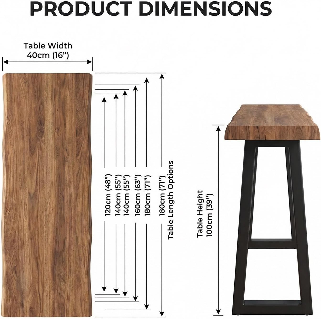Product name: Bar table/high tableMaterial: Solid wood + iron artCraftsmanship: high temperature paintProduct size:Tabletop:120x40x100cm , 140x40x100cm , 160x40x100cm , 180x40x100cmStyle: American retro stylePacking list:Bar table x1【Please note】1. Due to manual measurement, there may be an error of 1-3cm in product size.2. Due to different monitors, please allow slight color difference.
