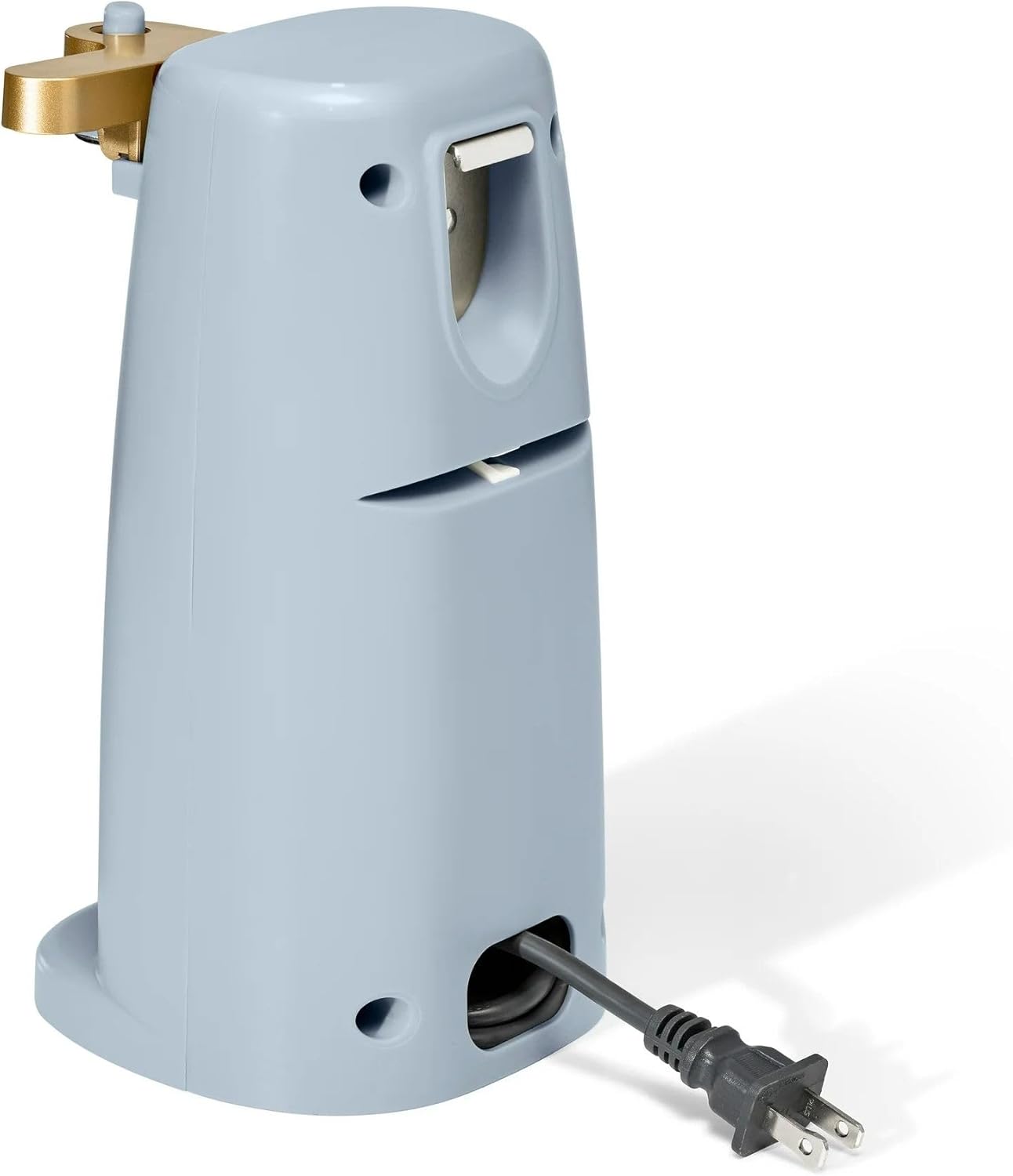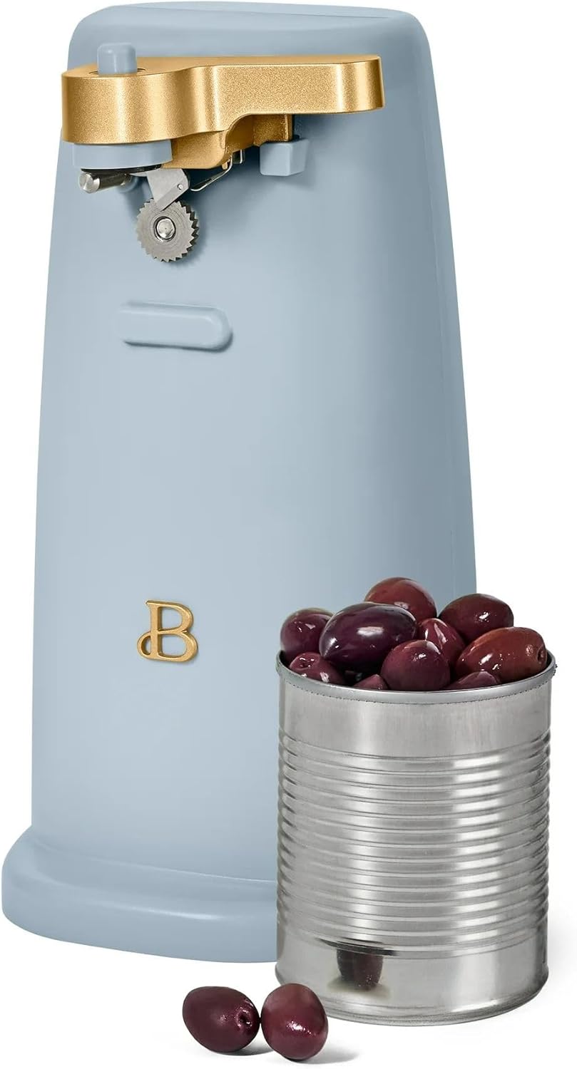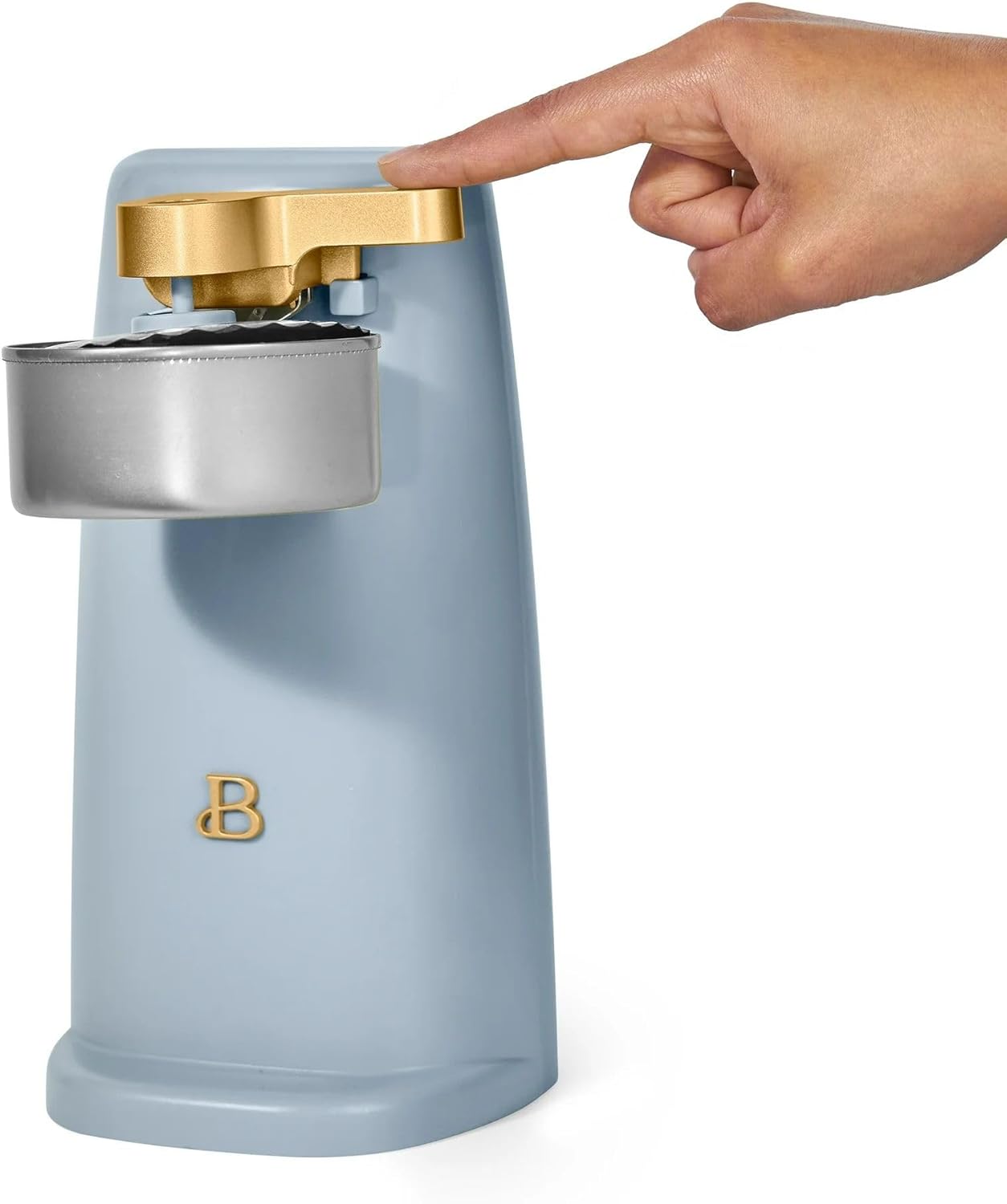 Streamline your mealtime prep with the Beautiful Easy-Prep Electric Can Opener. A stainless steel cutting blade and magnetic lid holder combine to open small, standard and tall cans with ease. This handy can opener also includes an auto-turn feature for convenient one-touch operation and a removable lever for easy cleaning, helping you get to your cooking tasks faster. It’s innovative no-tilt design keeps it steady too, for a worry-free prep. Plus, it also includes a built-in knife sharpener and bottle opener making it a true workhouse in your kitchen. A convenient cord storage compartment makes it easy to tuck away when not in use. Available in White Icing with signature gold accents.