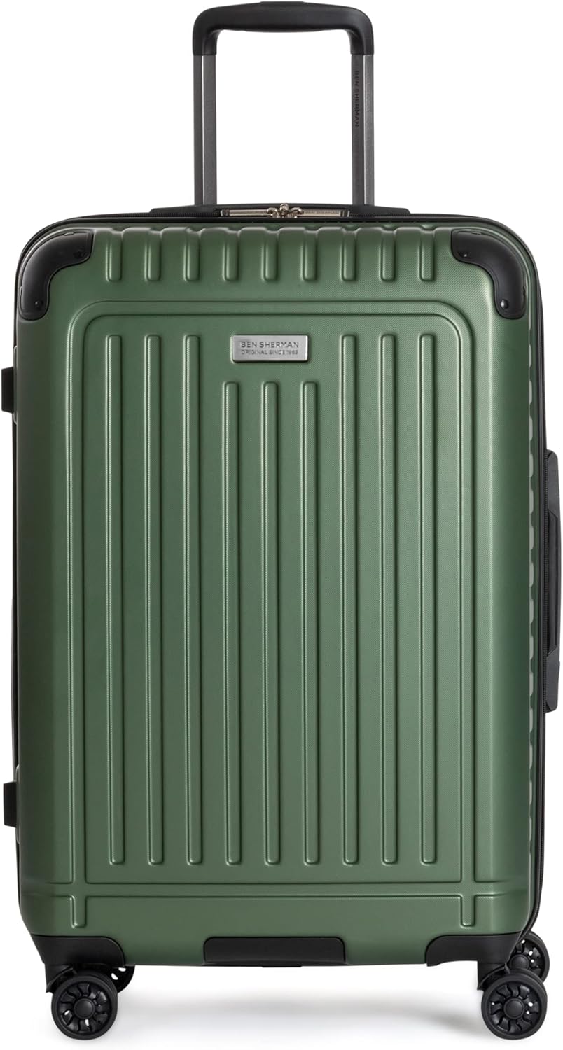 Pack your essentials for an overnight trip or a weekend getaway Inside this durable, hardside 8-wheel spinner 24" Checked-size suitcase from Ben Sherman "Sunderland" Luggage collection. 8-wheel spinners allow for 360-degree rotation, Lightweight construction. Expands and extra 2.0 inches. Durable ABS hard-shell exterior features, Molded corner guards. Self-repairing coil zipper, Top and side handles and molded base handles. Retractable telescoping trolley, Molded side feet on the 24” and 28” to help your luggage stand up on its side Tear-resistant, fully lined interior with a modern pattern includes. Main compartment features clothing compression straps, a hanging zipper pocket. U-shaped interior zipper panel for double-sided packing and a full-length mesh zipper pocket. This hard-side carry-on size meets most U.S based airline carry-on size requirements and fits in most airline overhead bin compartments. 10-year limited warranty. Individual Weights: 20": 6. 65 lbs / 28": 10. 35 lbs. Set Weight: 17 lbs. Whether you are heading to the office or to the airport, when you venture out with a bag from Ben Sherman, we want you to embark on your journey with confidence and peace of mind. This is why we are keen to even the smallest of details while putting emphasis on fashion, functionality, quality and durability above all else.