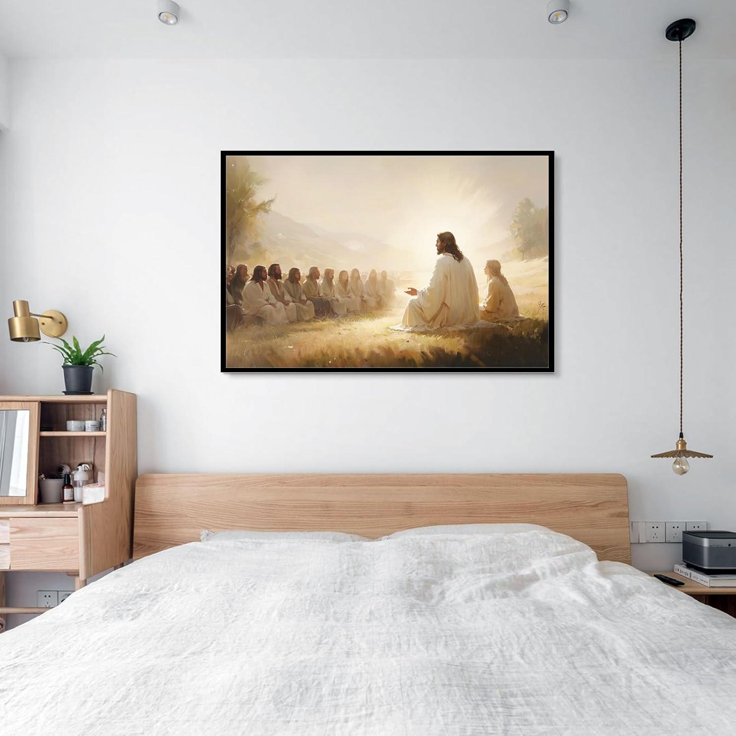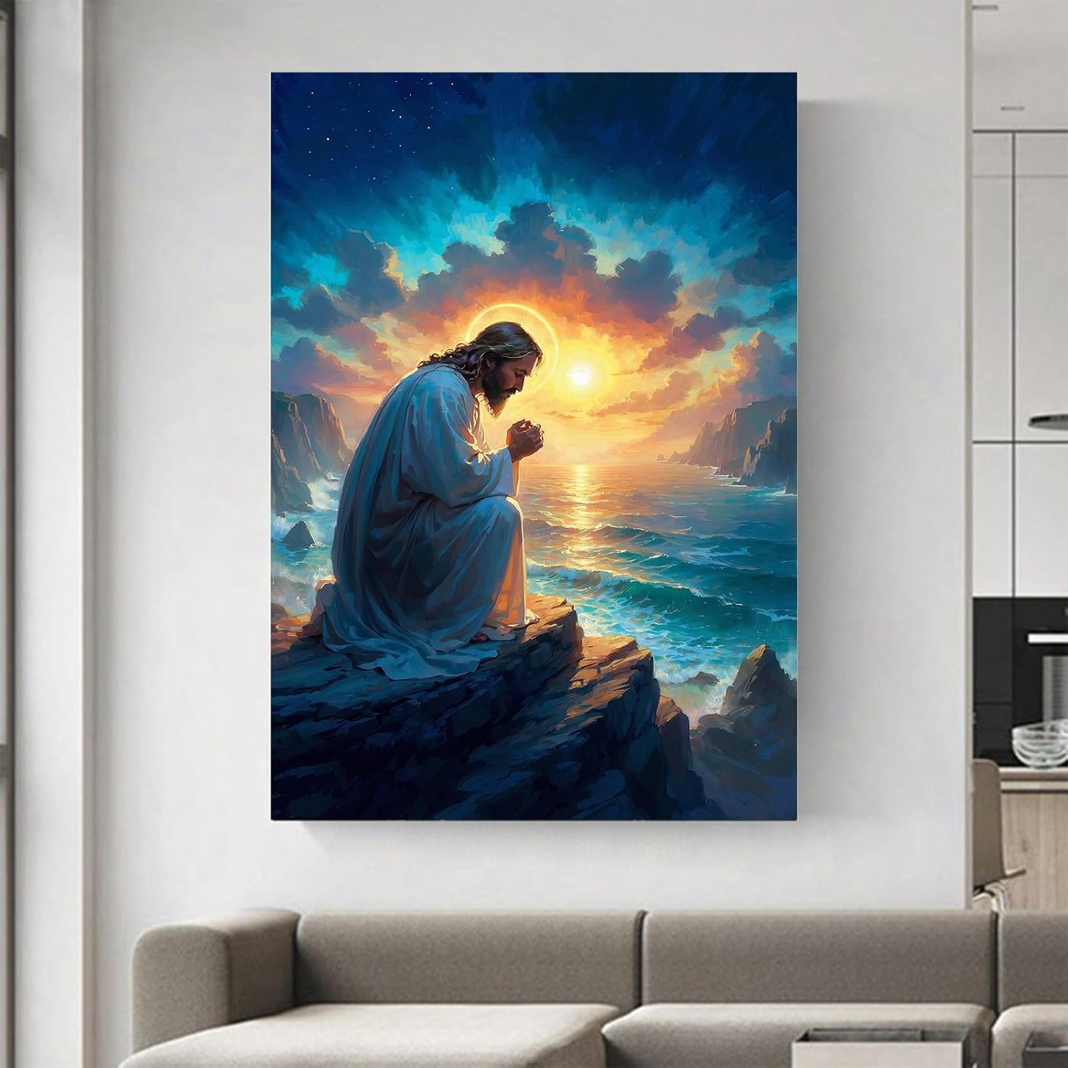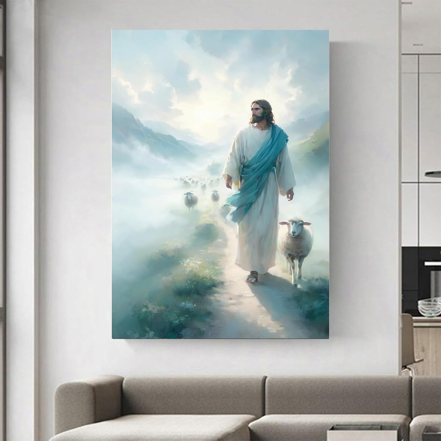 Dear buyer: This is a Jesus Christ religious canvas painting. If you want to add a warm feeling to your dull room, this Jesus wall decoration painting will be one of the best choices; at the same time, God will bless you and your family, and add a peaceful environment to your home. And this wall art will also inject artistic elements into your room and leave a deep impression on your distinguished guests.
