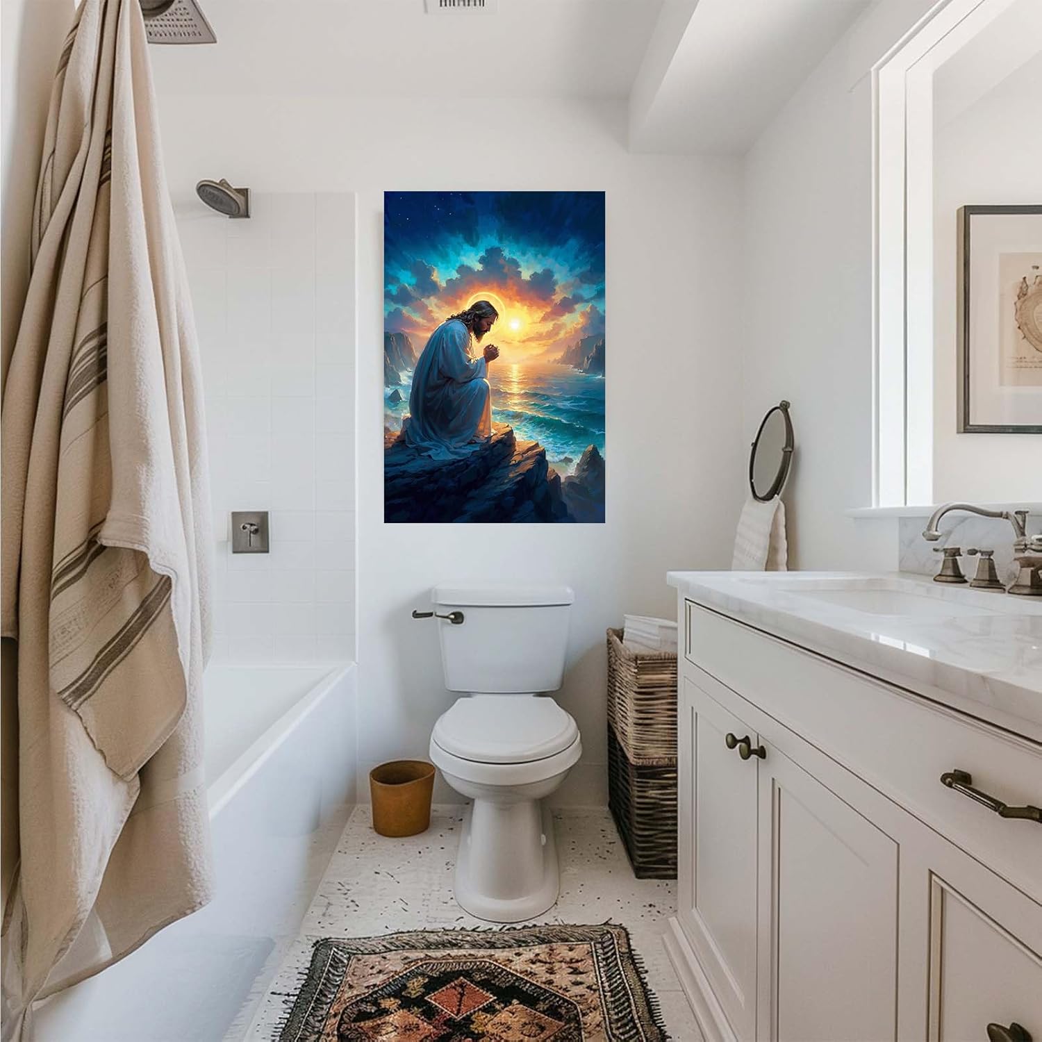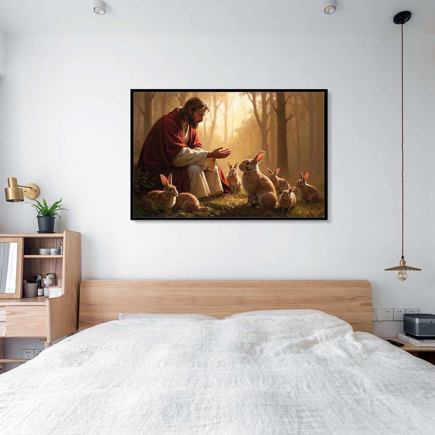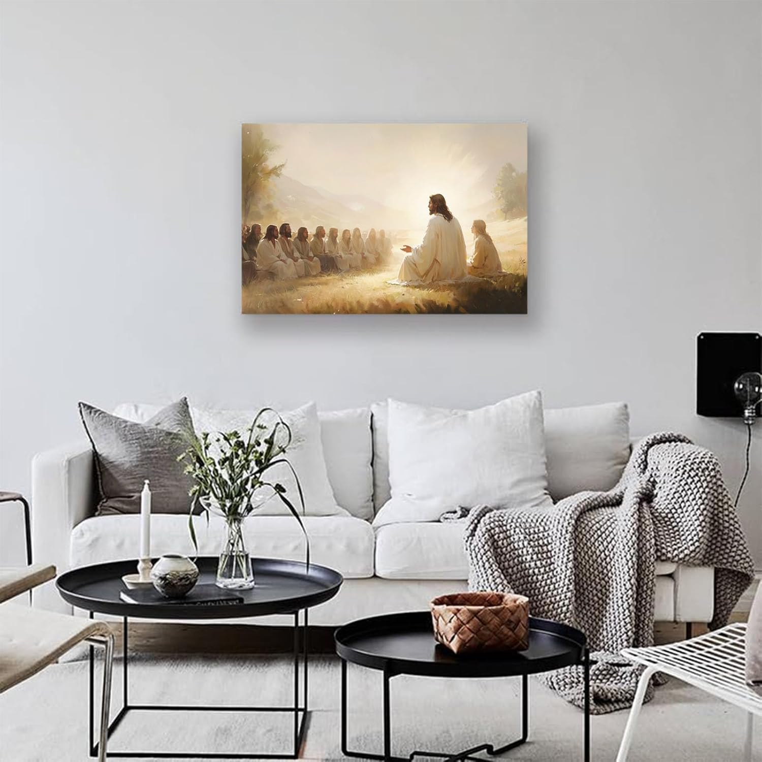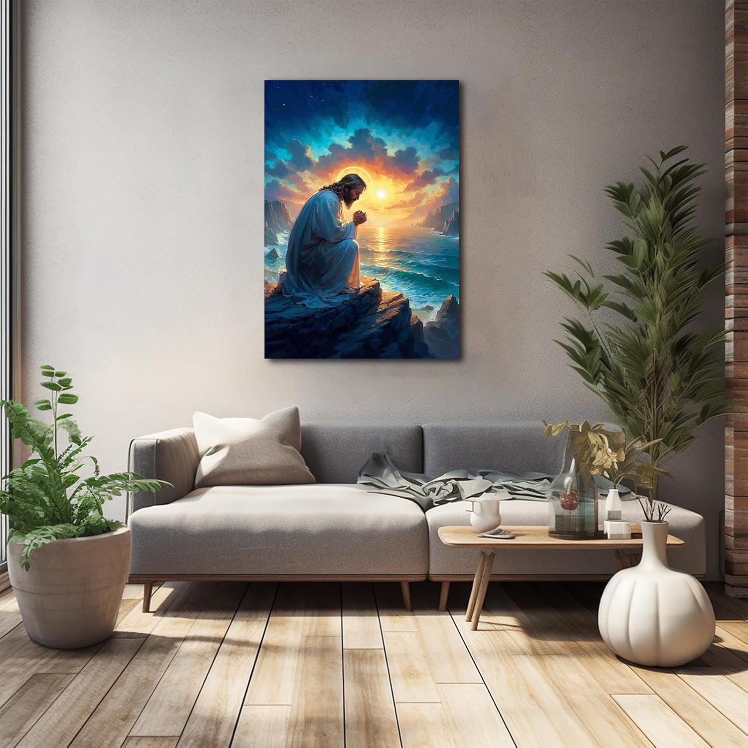 Dear buyer: This is a Jesus Christ religious canvas painting. If you want to add a warm feeling to your dull room, this Jesus wall decoration painting will be one of the best choices; at the same time, God will bless you and your family, and add a peaceful environment to your home. And this wall art will also inject artistic elements into your room and leave a deep impression on your distinguished guests.