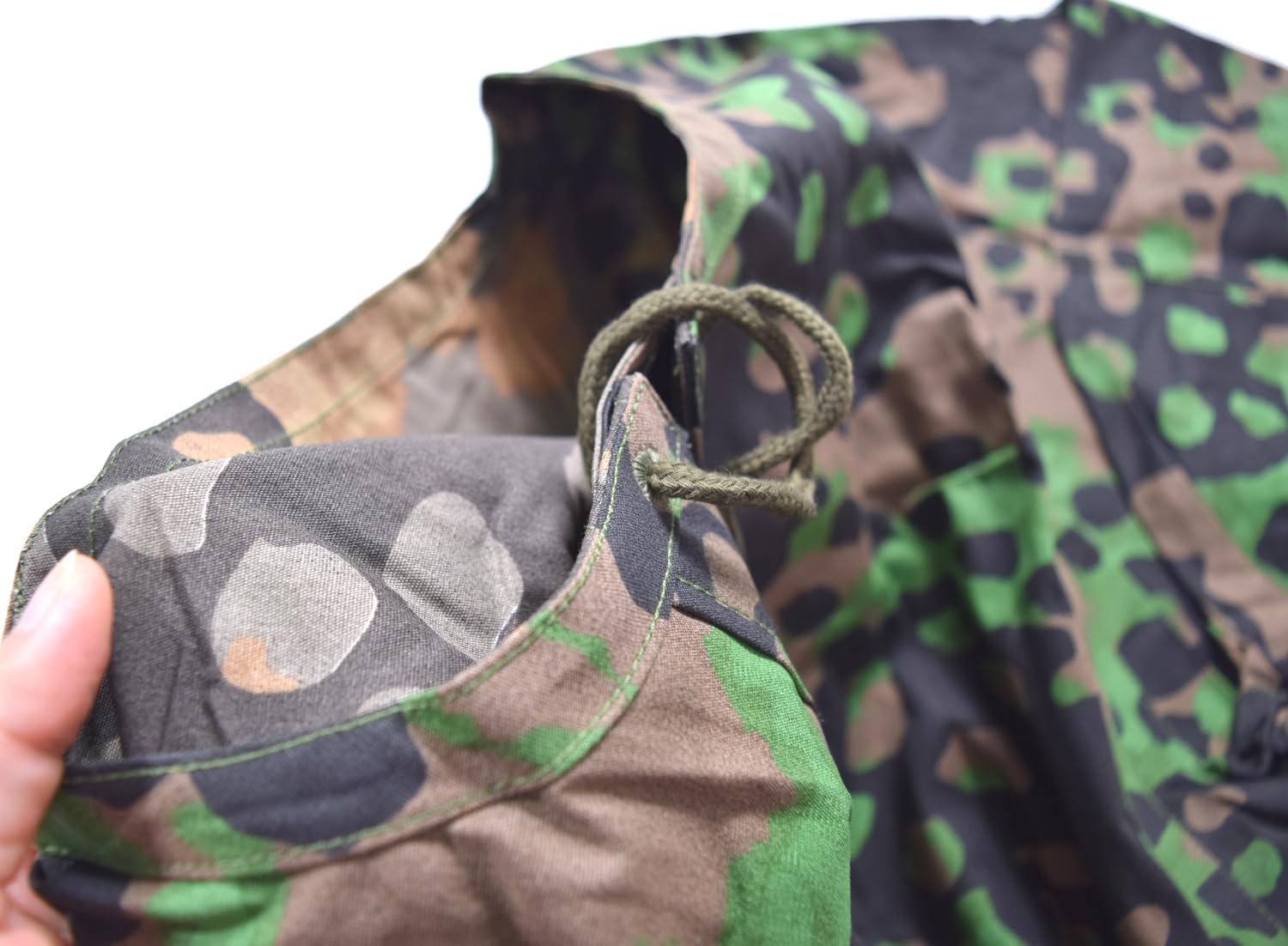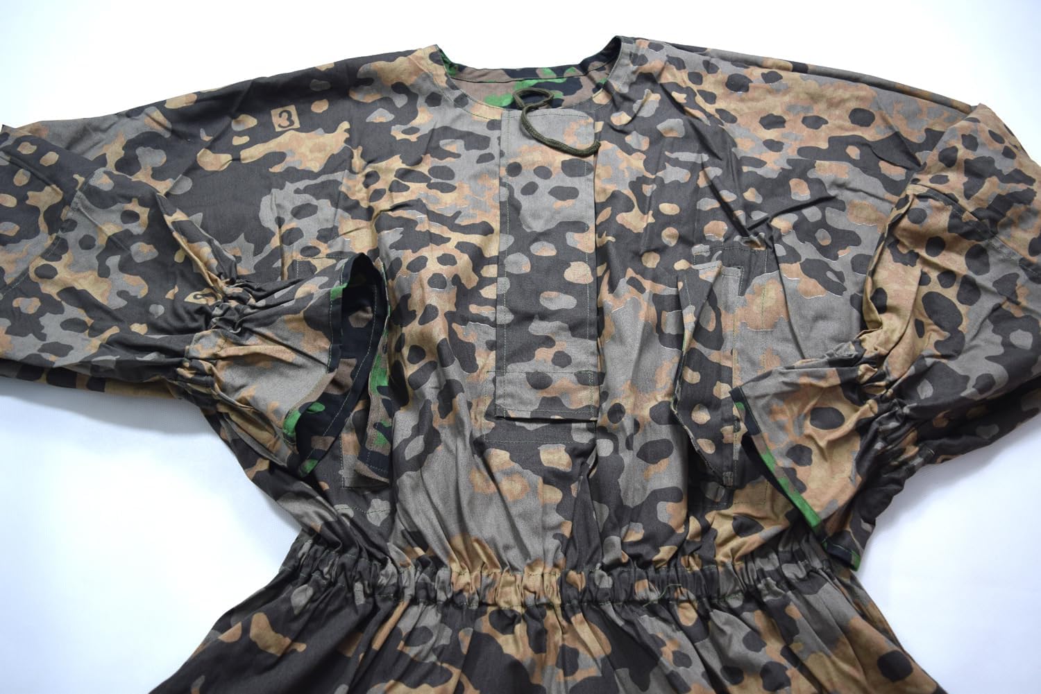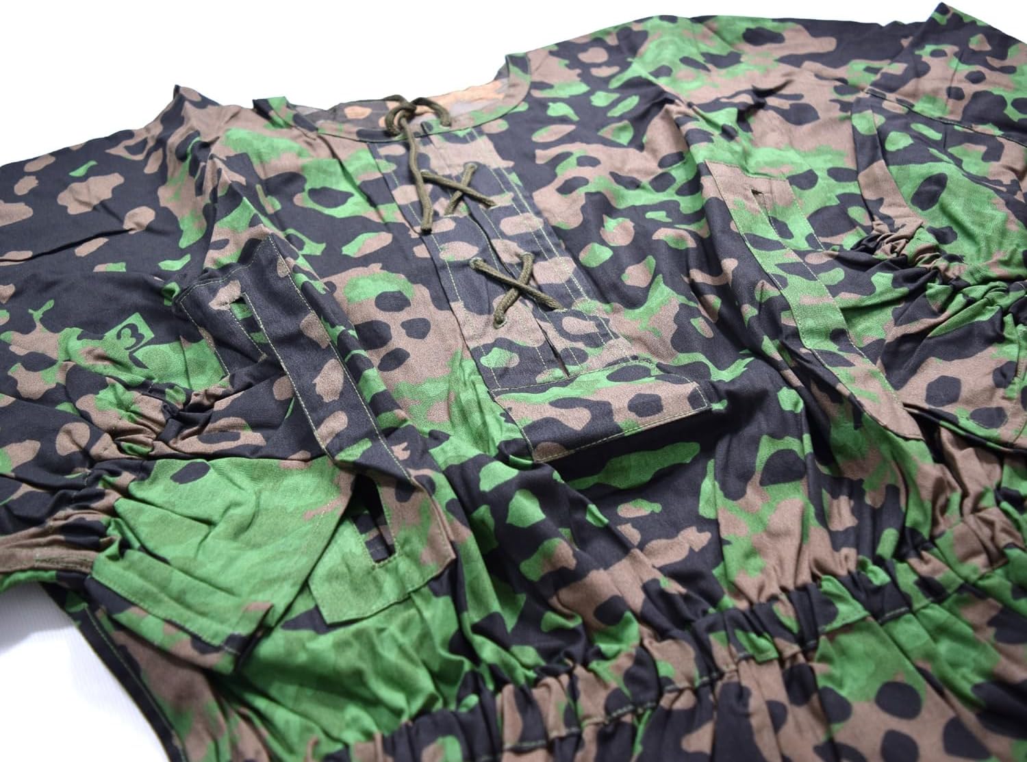 Description: The smock is Replica WWII German M40 camouflage smock. Camouflage smock is made of quality materials with excellent durability. It can give you give you the flexibility to choose the right face to wear in different environments. The camouflage is also waterproof, and can stay dry and comfortable even in light rain or wet environments. It is used for exploring outdoors, participating in gaming activities or other occasions that require concealing, it can provide you with excellent camouflage effect and wearing experience. Please measure your previous Uniform which fits you well, then check this sizing chart to choose the proper size. Size (in inch) Chest Shoulder Sleeve Length S 40 18 25 28 M 42 19 25 29 L 44 20 26 30 XL 46 21 26 31 XXL 48 22 27 32