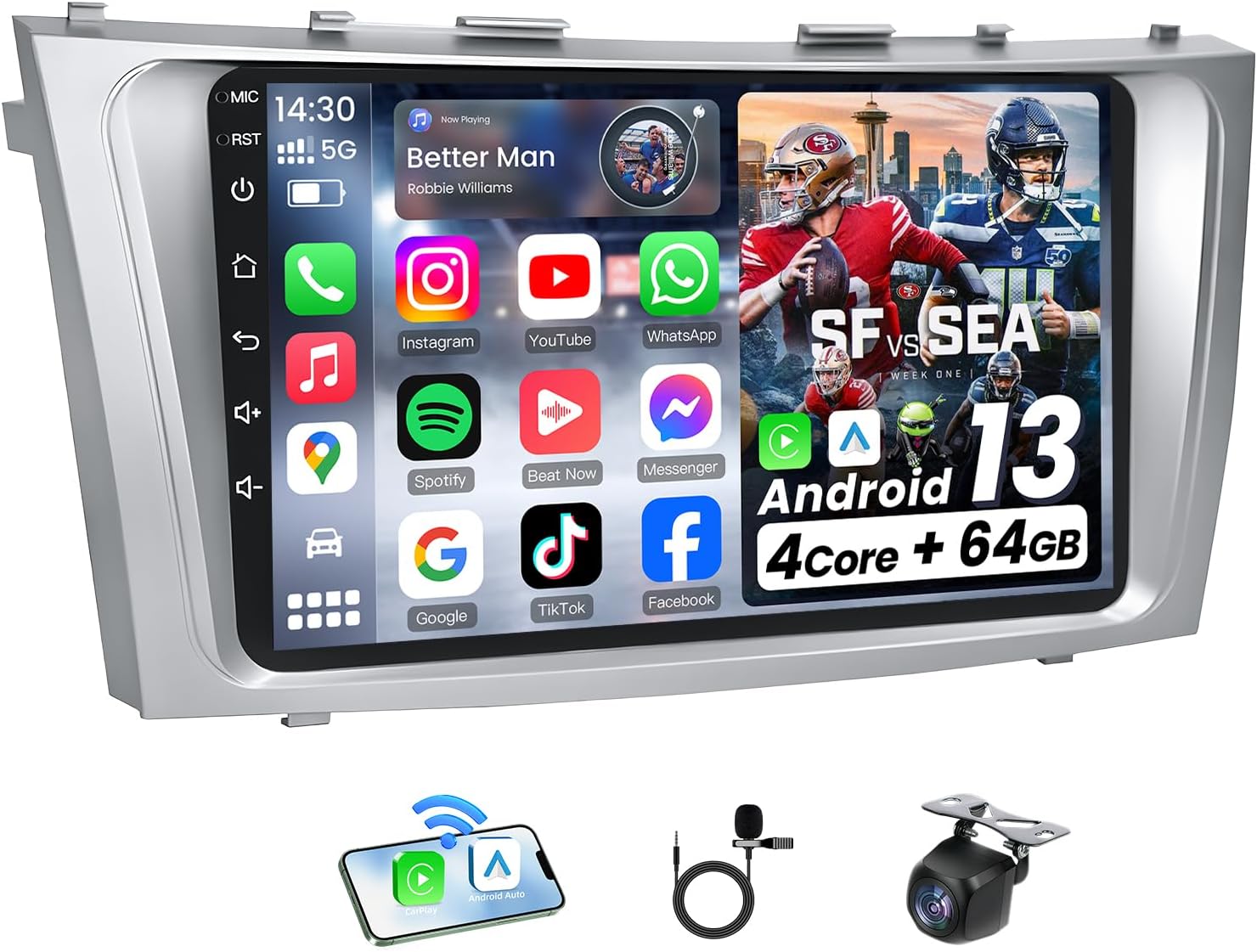 | Additional Features | Bluetooth, 5G-WIFI, Voice Control, 1280*800 Resolution, Support SWC (Steering wheel Control ), GPS Navigation, 1080P Backup Camera, FM Radio |