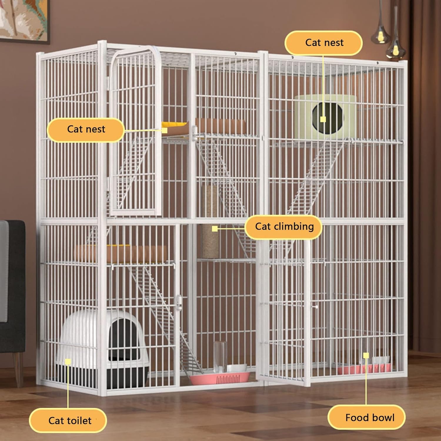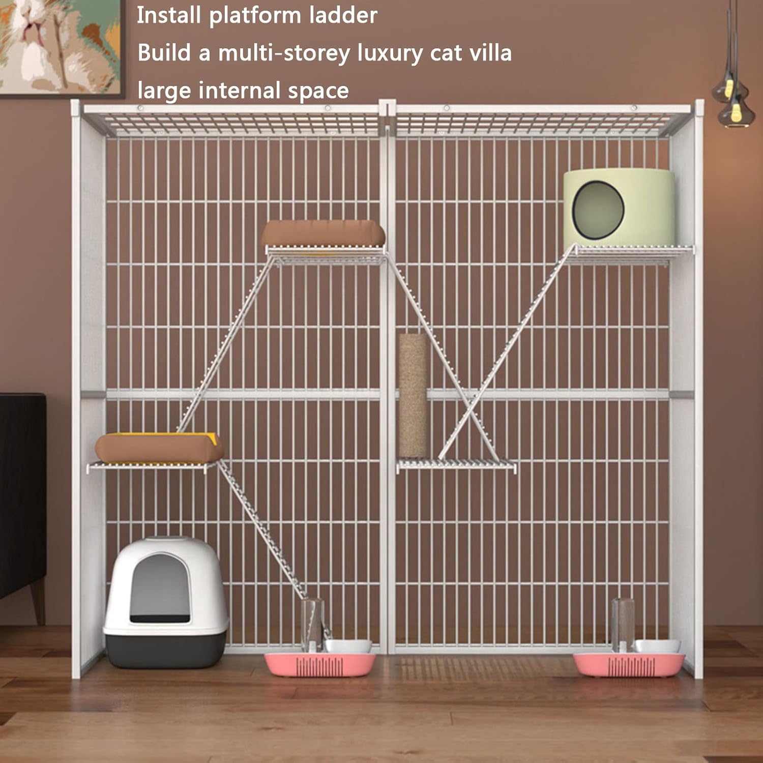 Welcome to my store,I wish you a happy shopping. Our shop has a variety of styles,you can go to my store view Extra Large Cat Cage Give feline friends a fun,safe place to hangout and play with the Cat Cage. The spacious wire cage works well for anything from keeping rambunctious kittens safely contained to slowly introducing a new cat to the family or for giving an older cat a safe haven to call her own. Feature: Spacious: The cage is ideal for 1 to 3 cats,also suitable for small pets like guinea pigs,ferrets,rabbits,etc. Heavy duty construction : This 2-tier cat home comes with a finished metal mesh structure of high quality and measured spacing. Note: Other accessories in the picture are not included,if necessary,please purchase them separately Your cat is going to love this,and love you for buying it!