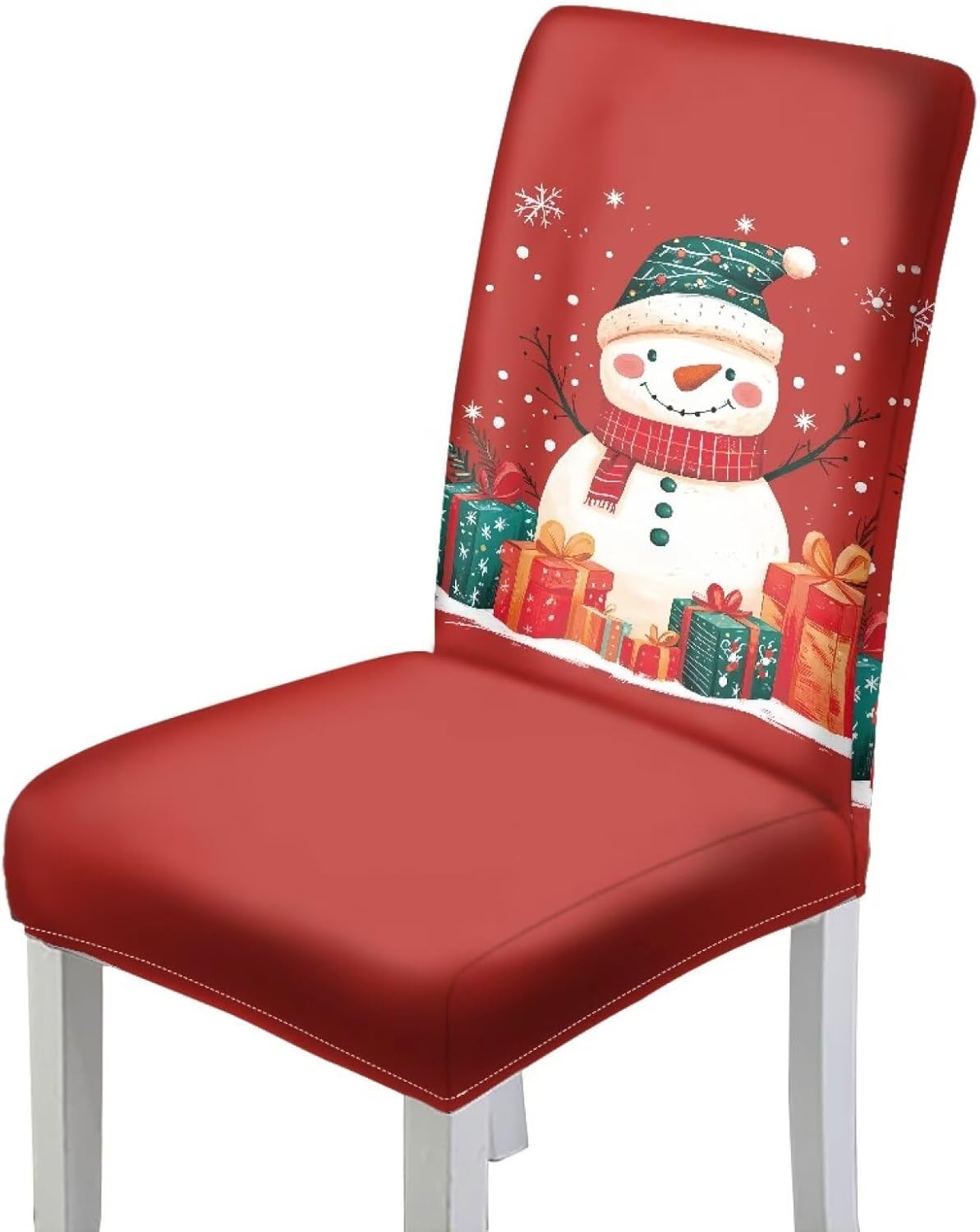 Premium Material: Crafted from a blend of high-quality polyester and spandex, this christmas kitchen chair covers is soft, stretch, and reusable. Its comfortable texture resists wrinkles and is machine-washable or hand-washable. The elastic band at the bottom securely fastens the cover, preventing slippage and fading. Exquisite Design: Dining table chair covers Featuring a festive Christmas theme, the covers showcase rich holiday print including Christmas trees, sleighs, snowflakes, and gifts against a classic background. Their elegant and eye-catching design makes them an ideal choice for Christmas decor. Perfect Fit: This elastic christmas kitchen chair cover set (2-piece) accommodates chairs with back heights of approximately 45-60 cm (17.7-23.6 inches), seat depths of 40-50 cm (15.7-19.6 inches), and seat widths of 40-50 cm (15.7-19.6 inches). 45-60 cm, seat depth approx. 15.7-19.6 inches / 40-50 cm, seat width approx. 15.7-19.6 inches / 40-50 cm, fits most square dining chairs. Perfect Furniture Protection: Xmas dining room chair covers refresh old furniture, effectively shielding against dust, stains, daily wear, tears, and accidental spills while giving seats a fresh, attractive appearance. Holiday chair covers slip directly over seat surfaces for easy installation. Versatile Applications: Seat covers for chairs is Ideal for Christmas parties, winter gatherings, weddings, hotel banquets, gala dinners, ceremonies, and conferences. Suitable for indoor/outdoor settings including dining rooms, living rooms, cafes, and offices.