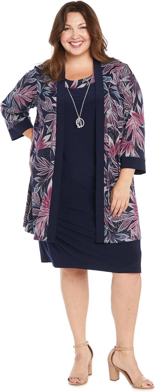 Step into the spotlight with this floral printed jacket dress from R&M Richards., a stunning ensemble that effortlessly combines elegance and flair. Featuring a beautiful multicolor floral print foil jacket, this set exudes sophistication with a bold and vibrant design. The sheath dress underneath offers a figure-flattering fit, enhancing your natural shape, while the attached necklace adds a chic touch, elevating the entire look without the need for extra accessories. Perfect for weddings, formal dinners or any special event, this dress set offers an unforgettable combination of style, comfort and versatility. Whether you're headed to an evening affair or a daytime celebration, this outfit ensures you stand out in style and grace.