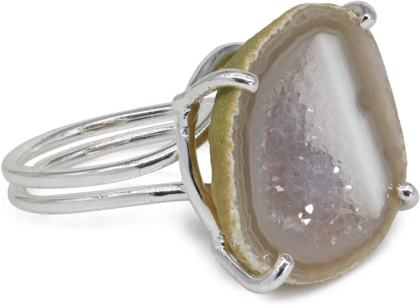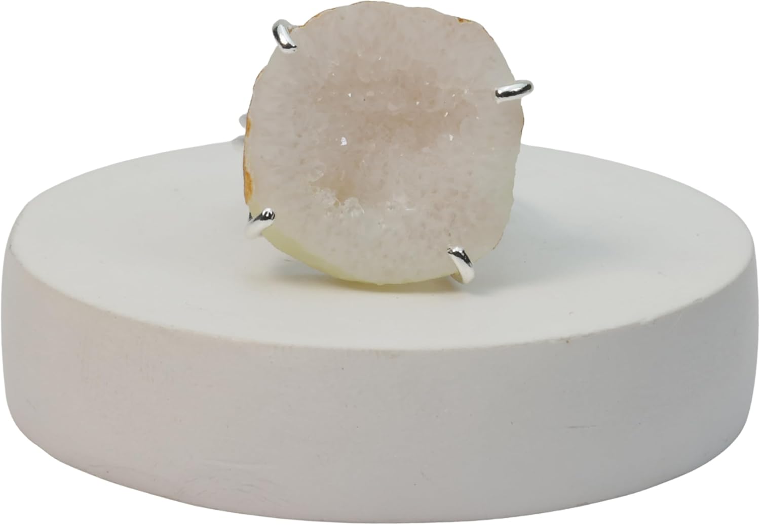 Elevate your style with these handmade rings featuring stunning geode agate quartz druzy stones. Each ring showcases a unique, eye-catching gemstone in shades of white, gray, and gold, ranging from approximately 15-20mm in size. Crafted with care, these adjustable rings allow for a perfect fit on your finger. Whether you're dressing up or keeping it casual, these versatile rings add a touch of natural beauty to any outfit. Ideal for women who appreciate handmade jewelry with a bohemian flair. Embrace the captivating allure of these tiny gemstone rings and let them become a treasured part of your accessory collection.
