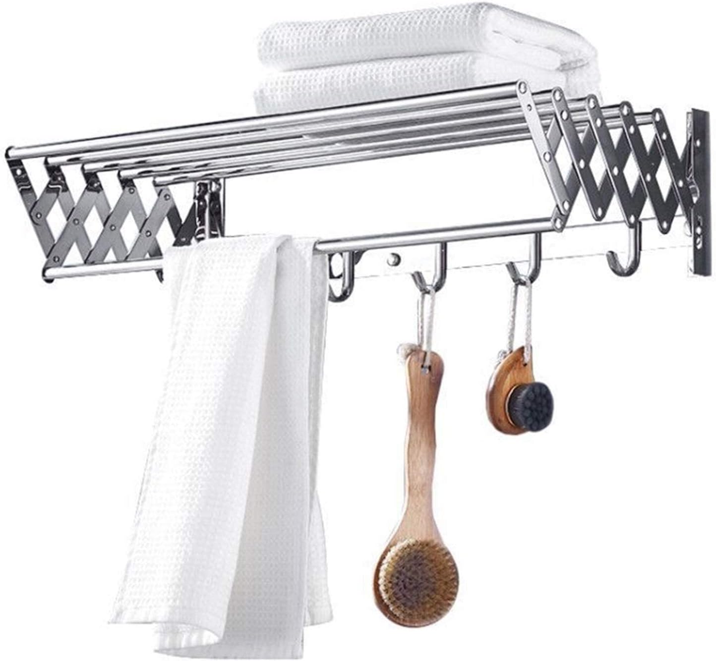 Product name: Stretching towel rack Product material: stainless steel Product color: silver Product size: length 50-60cm, width 13-35cm, height 14.5cm Weight: 50 kg Installation method: free punching installation Scope of application: bathroom, balcony, bedroom installation steps: 1. Select the location and wipe it clean with a cloth 2. Mark the location 3. Paste 3M glue on the bottom plate and apply glue on other positions 4. Attach the auxiliary sticker and press hard against the wall 5. After 72 hours 6. Tear off the auxiliary sticker and use it The package includes: 1x drying rack