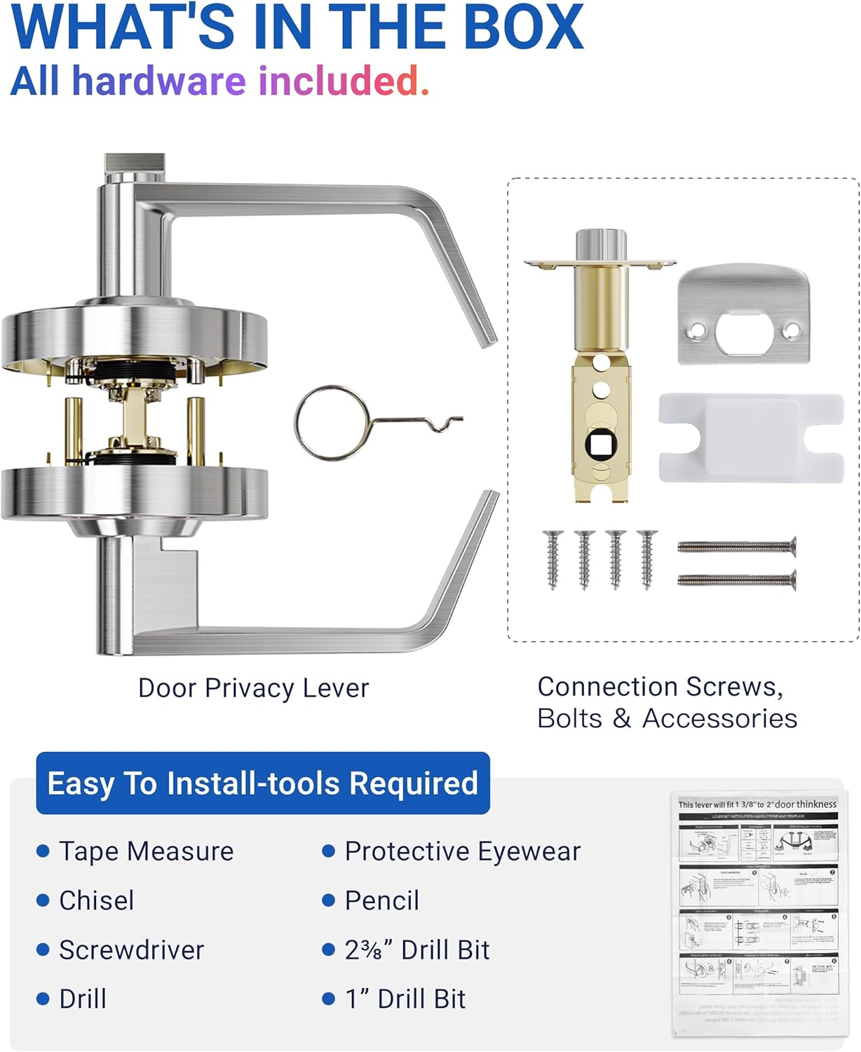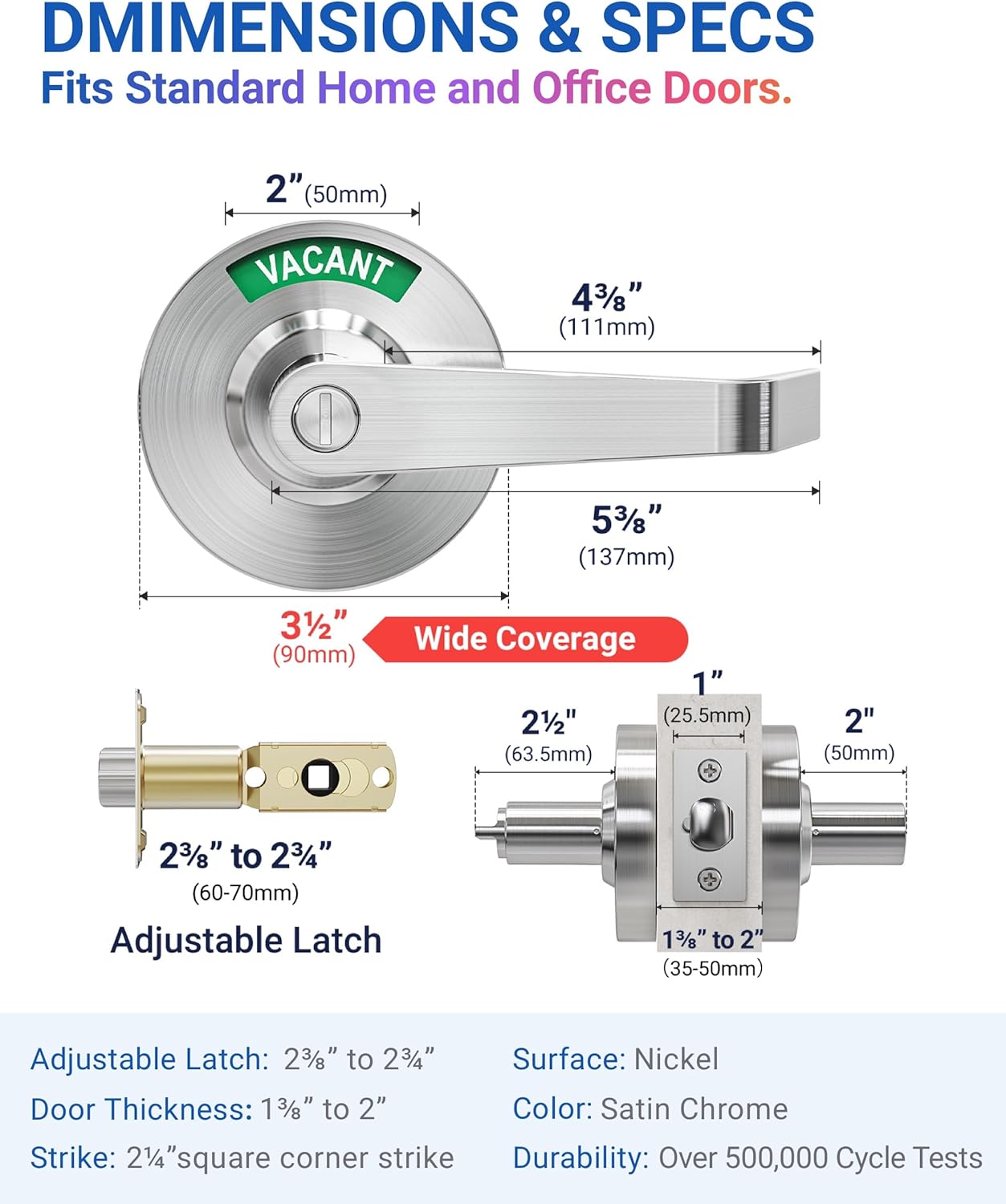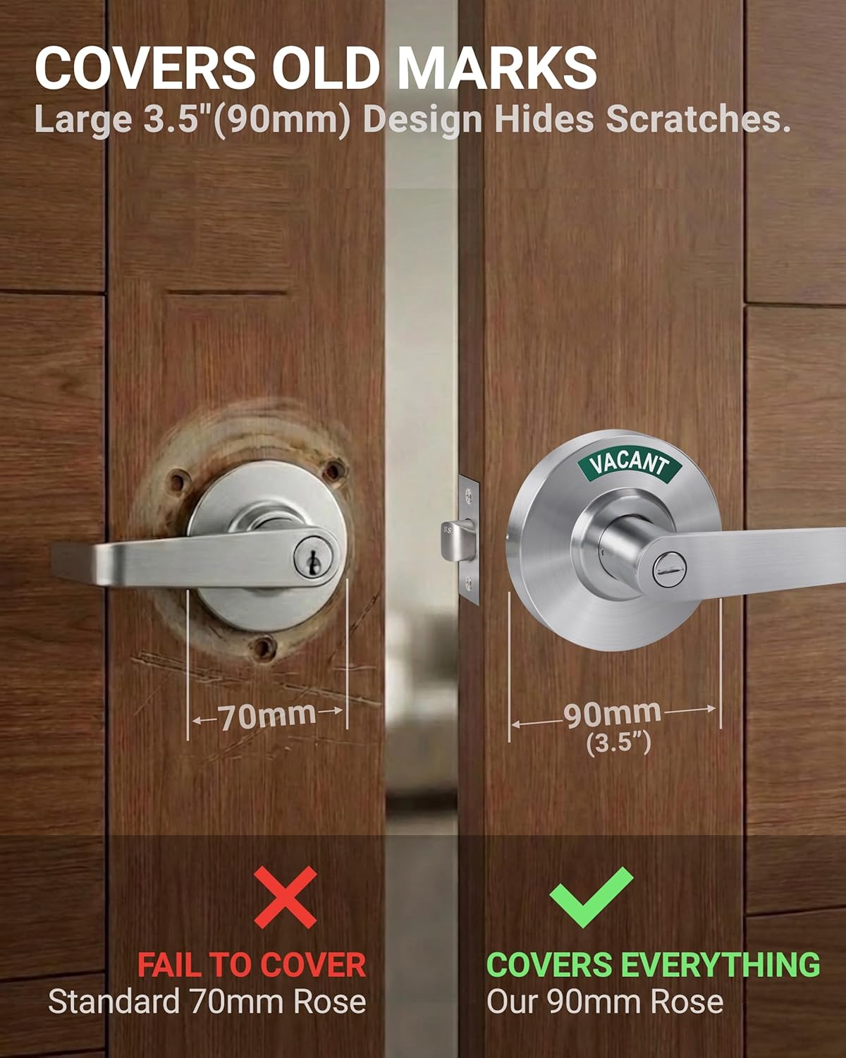 | Included Components | 90mm Large Rosette Cover, Adjustable Latch Mechanism, Installation Guide & Release Tool, Privacy Indicator Door Lever Set, Strike Plate & Mounting Hardware |