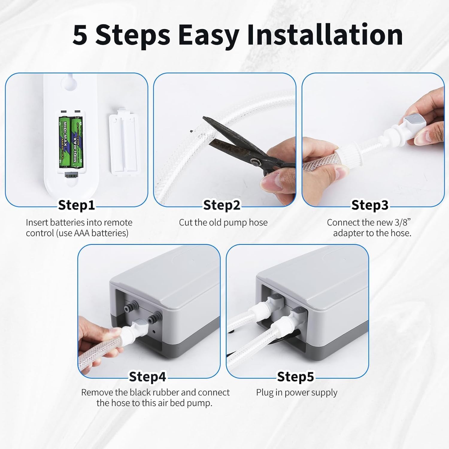 | Included Components | 1* air pump, 1*Wireless Remote Control, 1*Power Supply, 1*Hose, 2*Connectors |