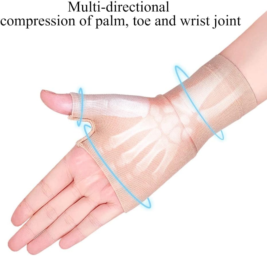 Item Name: Wrist GlovesUnit: 1 PairMaterial: 80% nylon+20% spandexGender: UnisexAge: AdultsColor: Beige, BlackSize: S, M, L, XL (See the picture for the specific size)Suitable season: all yearProduct function description:When your hands feel uncomfortable, it can help you distract, provide extra warmth through compression after wearing, provide extra support for the thumb fingers and joints, and reduce the pressure on your fingers. The fingertips design will not affect your normal touch.Feature:1. Lightweight and string supports fit left and right side.2. Helps support injured and weak muscles and/or joints during sporting or occupational activities.3. Helps sprains, strains, instability joints & arthritic joints.4. Specialist breathable fabric helps with control.5. Unisex and comfortable to wear.The only wrist support you'll ever need protects the integral parts of your fitness as an athlete: your wrists and hands.