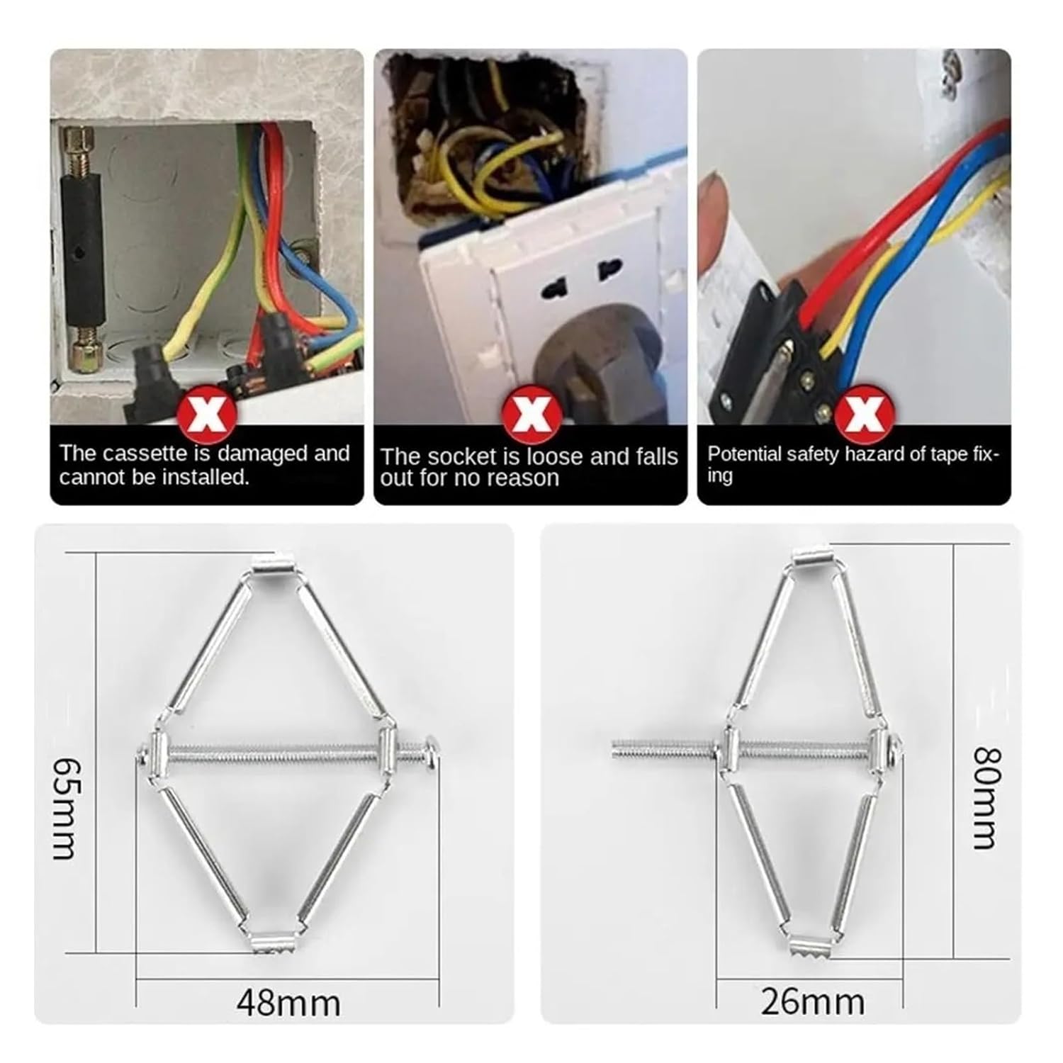 In-Wall Junction Box Support: Designed to stabilize and reinforce electrical boxes that have become loose within wall cavitiesMaterial: metalColor: silverQuantity: 50pcsNote:Please allow 0-1cm error due to manual measurement. Due to the difference between different monitors, the picture may not reflect the actual color of the item.