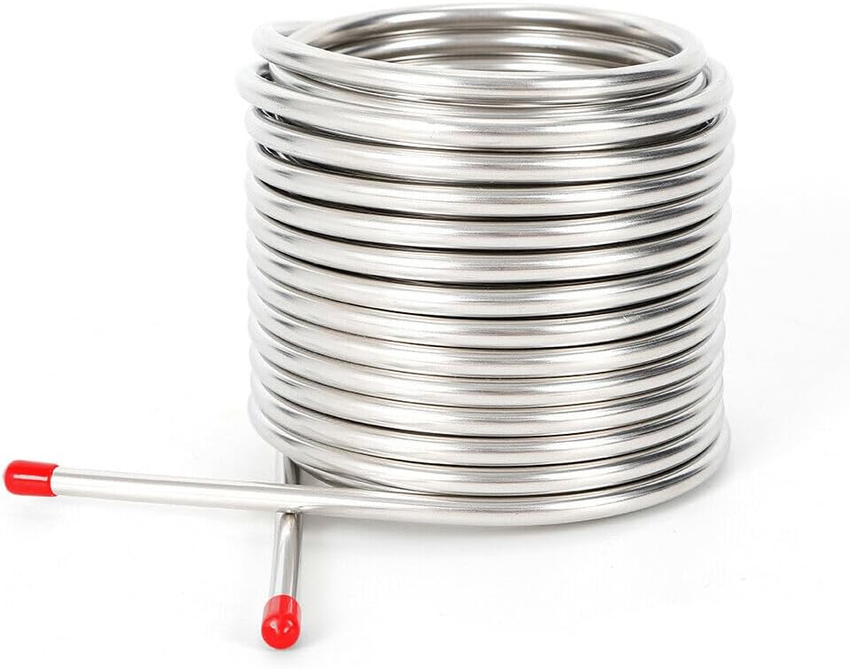 DescriptionOur beer cooling coil pipe is made of high-class 304 stainless steel for safety and durability, giving you long-lasting service. The unique double-layer design allows the wort to reach the temperature you want to inoculate the yeast, locking in freshness and doubling the flavor.DetailsPipe Caps: They can protect your hands while you are using it and also prevent the package from being damaged during transportation.Suitable Tube Diameter: A 0.31-inch tube diameter can speed up the cooling efficiency and ensure that the beer is discharged more quickly and smoothly.How to Install the Water Adapter1. Unscrew the filter of the basin faucet.2. Use the thread seal tape to bind in the connection's thread.3. Screw on the basin faucet.4. Screw the connector to the faucet.5. Connect the silicone hose.SpecificationAssembly Required: NoMaterial: 304 Stainless SteelColor: SilverShape: RoundApplicable Beer Holding Tank Capacity: 12L/12.7QtPipe Diameter: 8mm/0.31inPipe Thickness: 0.5mm/0.02inProduct Size(D*H): 143*150mm/5.63*5.91inPackage Size: 30*18*16cm/11.81*7.09*6.3inGross Weight: 1.68kg/3.7lbsNet Weight: 1.5kg/3.31lbsPackage Included1* 304 Stainless Steel Cooling Coil PipeNotes1. Please check the style and size before purchasing.2. Please note that our package only includes a cooling coil pipe.