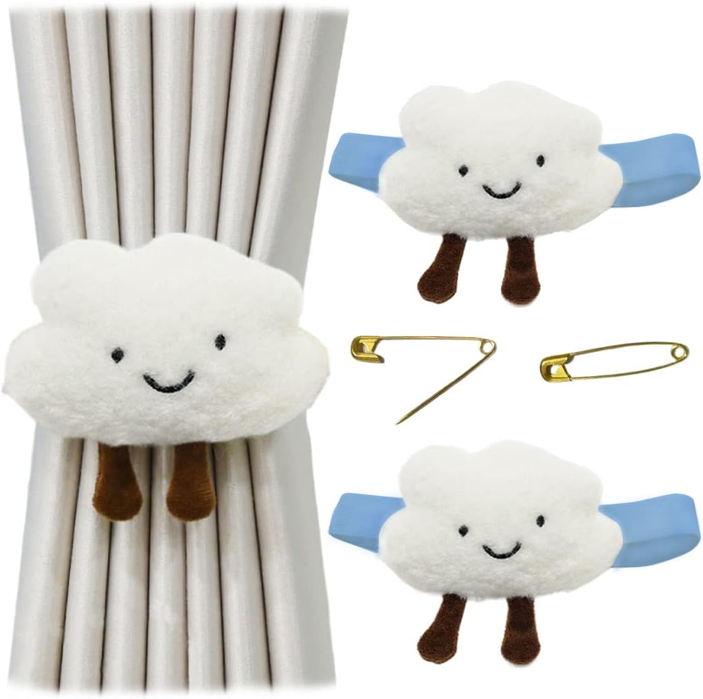 Adopt cartoon cloud, star, starfish design, coupled with soft material, which makes these curtain tiebacks kawaii, cute and sweet. These cute and sweet curtain tiebacks are made of high quality plush material, which is soft and comfortable to touch. There are many styles to choose from, all of them are so kawaii and cute that you will be satisfied to your purchase. No hooks and tools are needed. Just wrap the curtain by rope, and tie a knot. Take them down easy as well, then tied on anywhere of curtain when not in use.