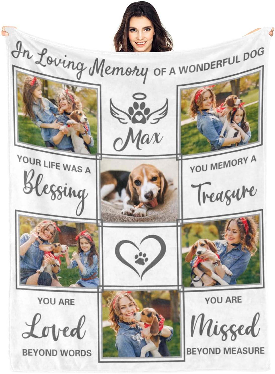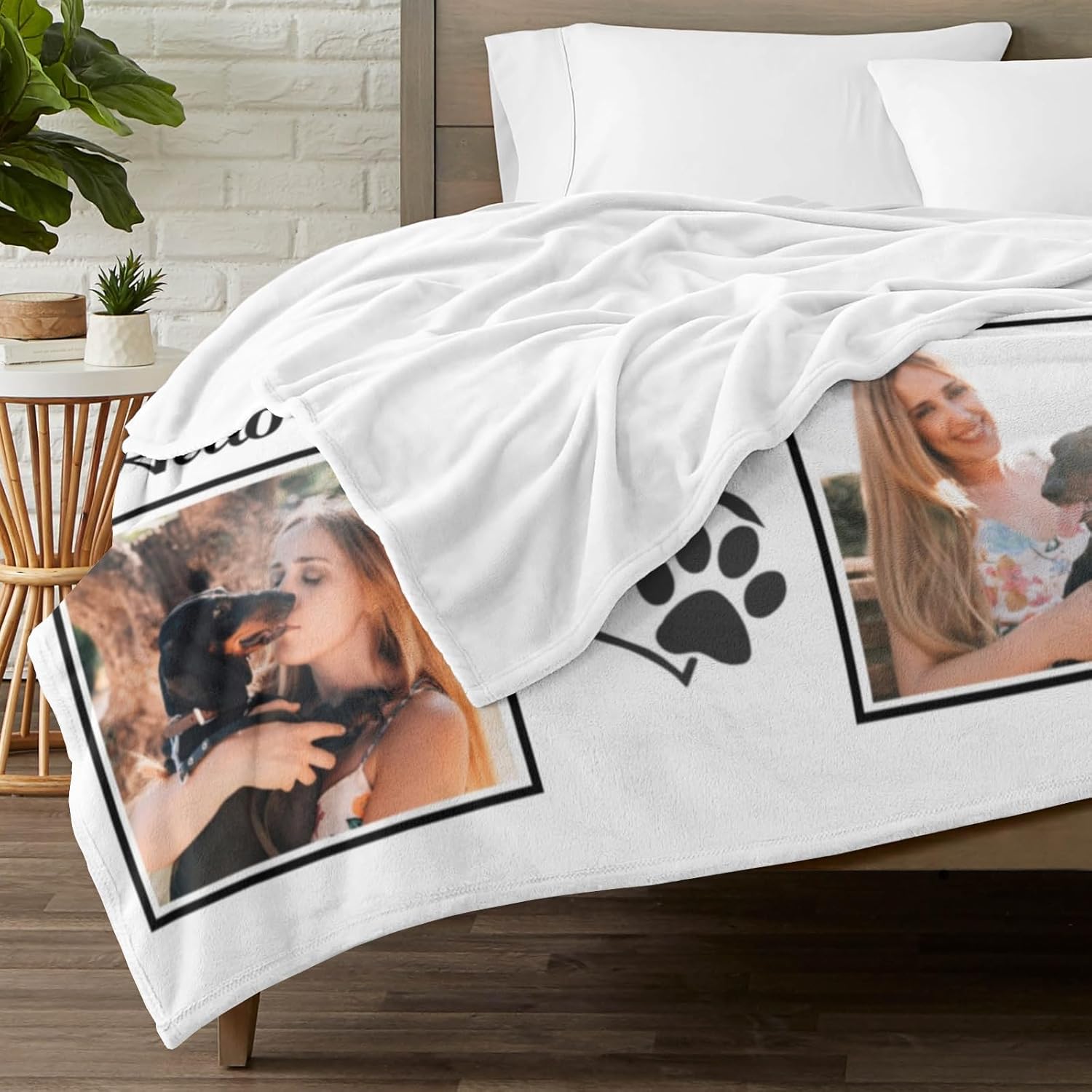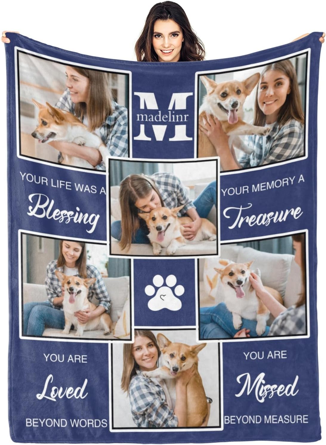 Material : Made from 100% high quality ultra-soft Micro Fleece, skin-friendly ; Size : Baby (30"X40"); Kids (40"X50");Adult (50"X60") ; Bed(60"X80"); Style : Personalized Blanket with Dog's or Cat's Photo and Name. Scenes : For all seasons use, great option to keep in living room, bedroom, sofa, couch, airplane, camping, travel or car.