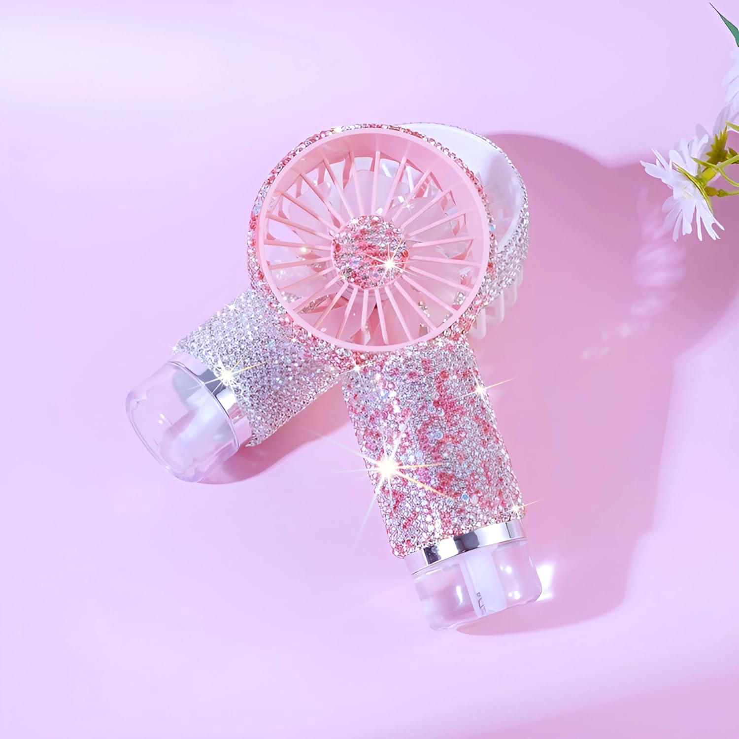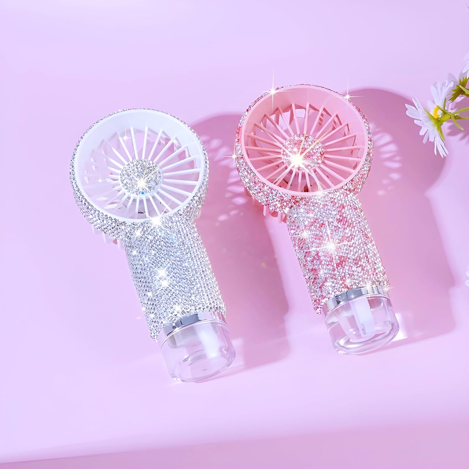 Cute Cat Handheld Fan with Mist Spray – Portable USB Rechargeable Personal Fan Strong Wind Diamond Design Silver Mini Fan for Travel, Office, Outdoor