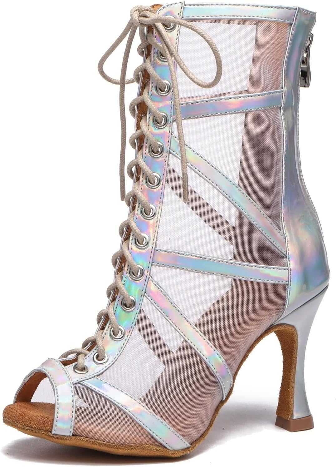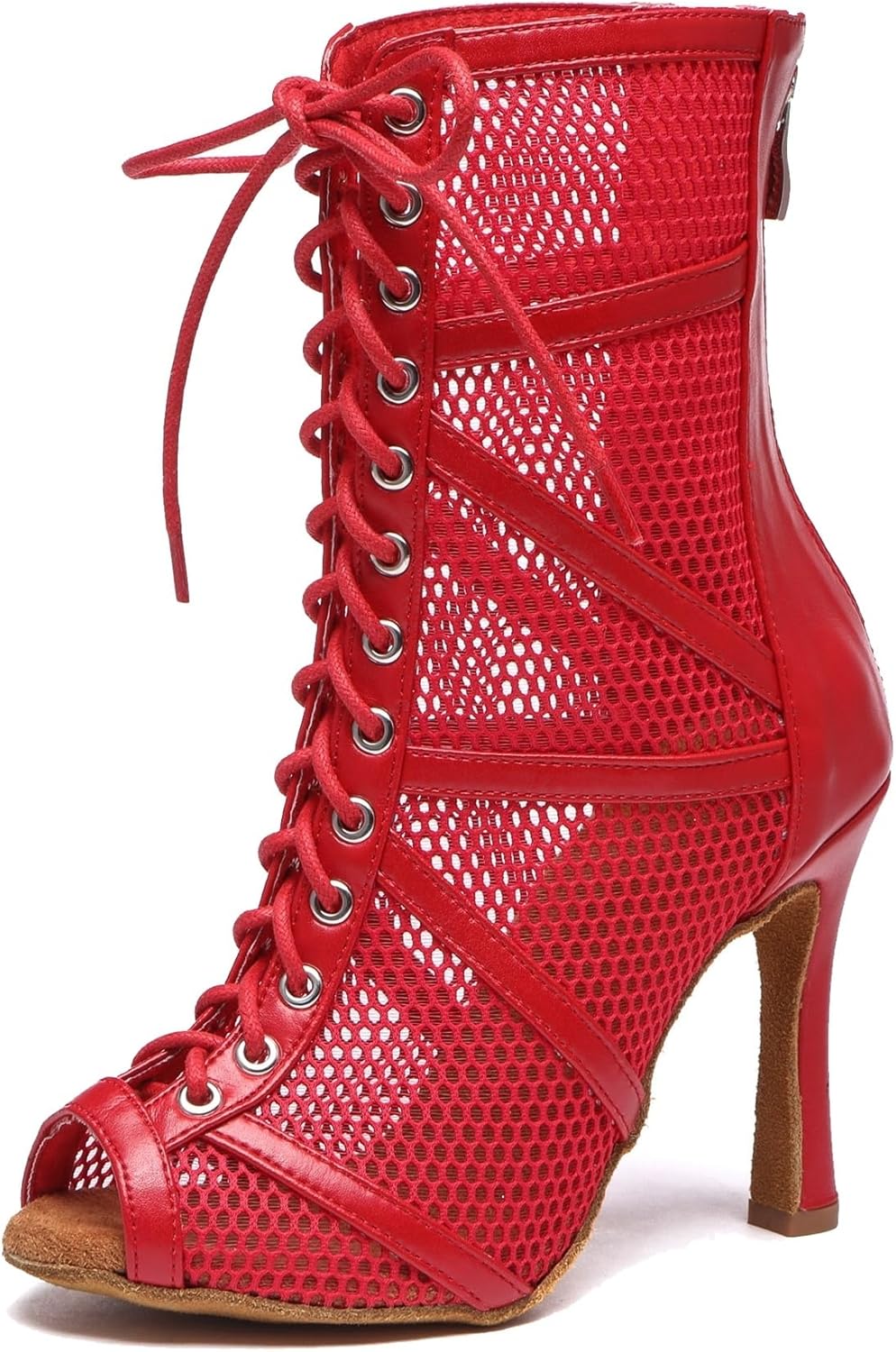 ZengyeZoo Dance Practice Shoes for Women Mesh Ballroom Sandals Heels Party Prom Ankle Booties with Zip X3220