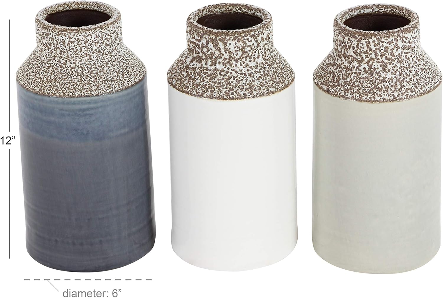 | Additional Features | A set of cylindrical ceramic vases highlighting speckled tapered necks and glossy bodies with deep setting |