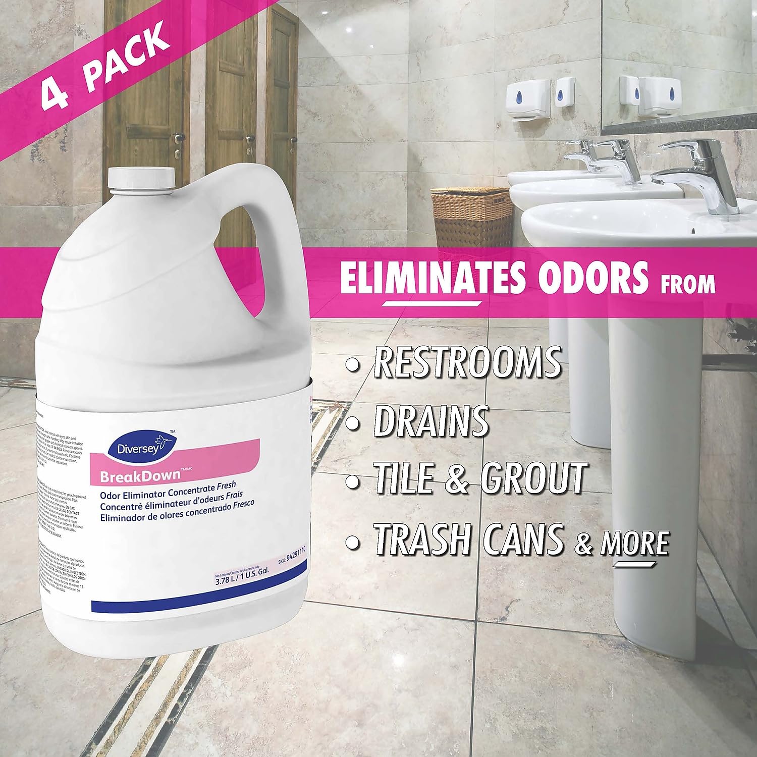 Diversey 94291110 Butcher's Odor Eliminator, Fresh Scent, Liquid, 1 gal. Bottle (Case of 4)
