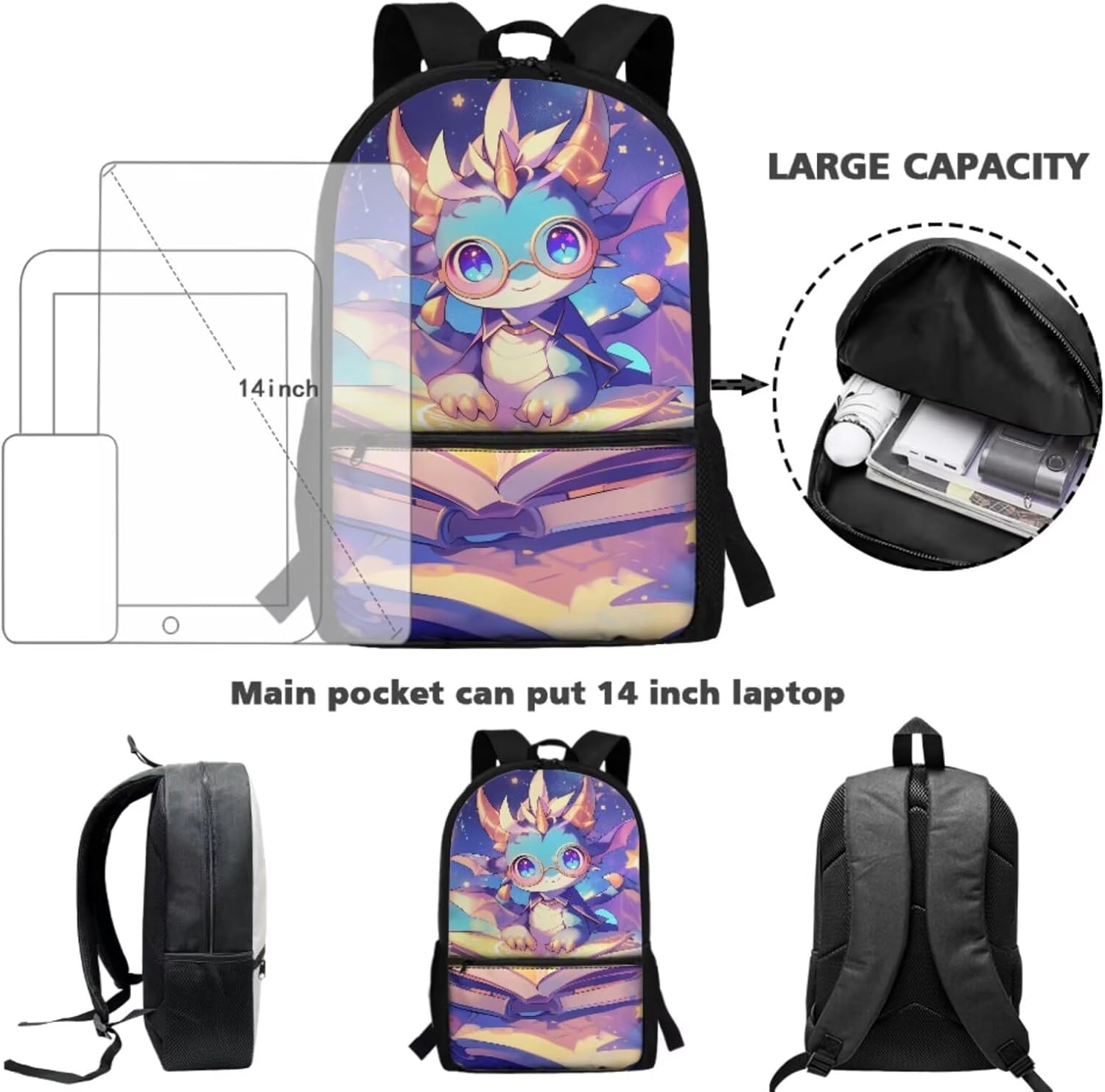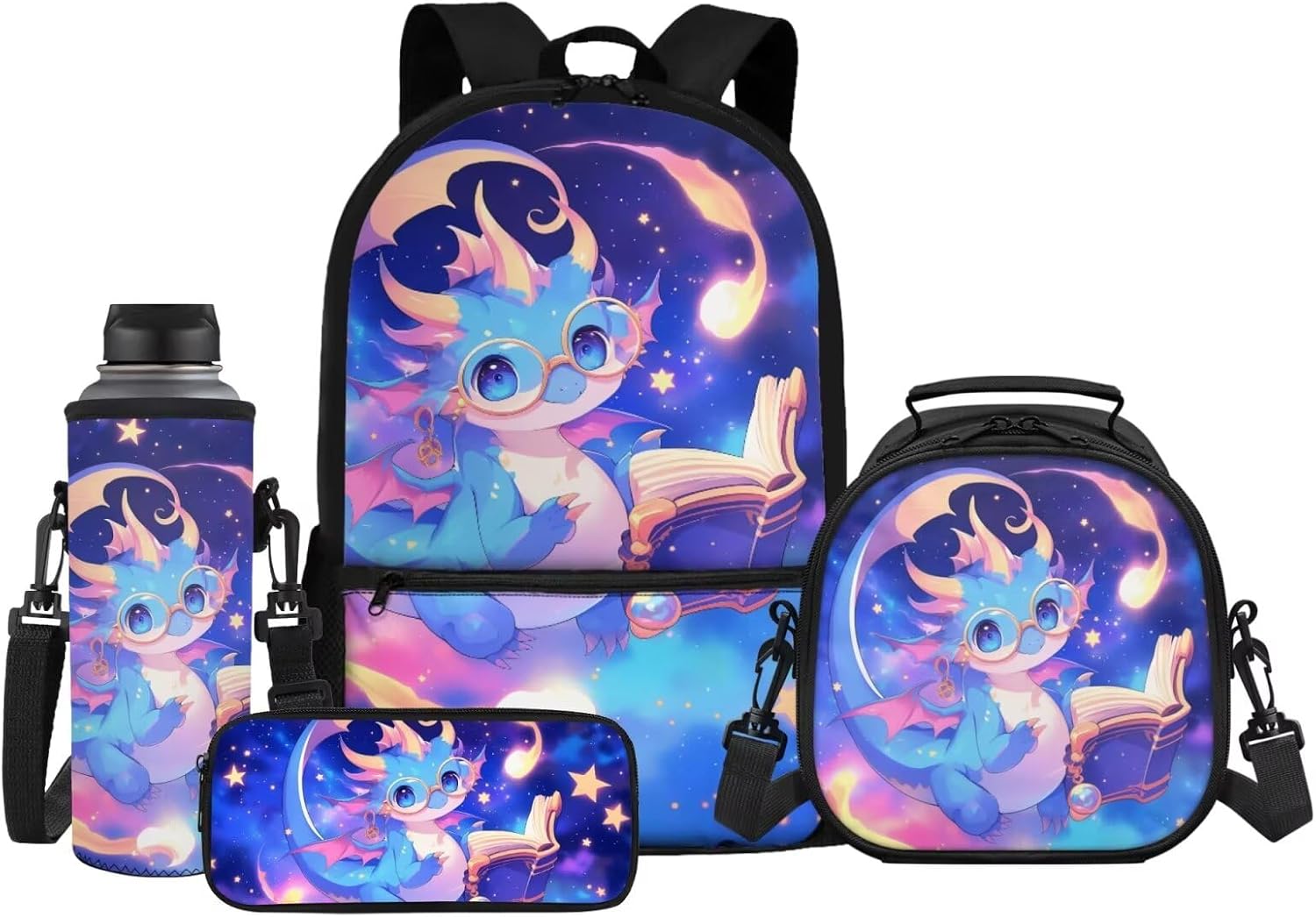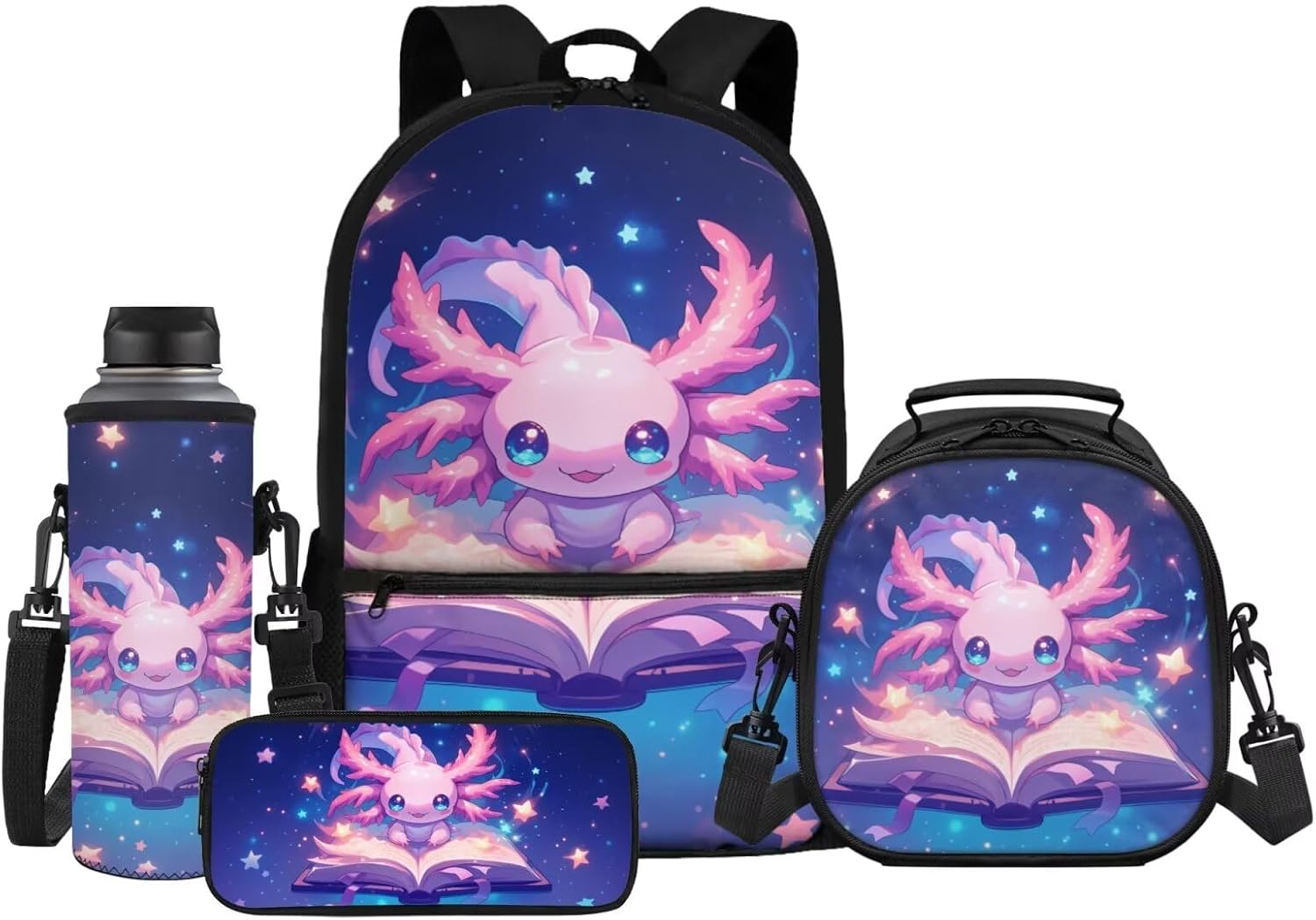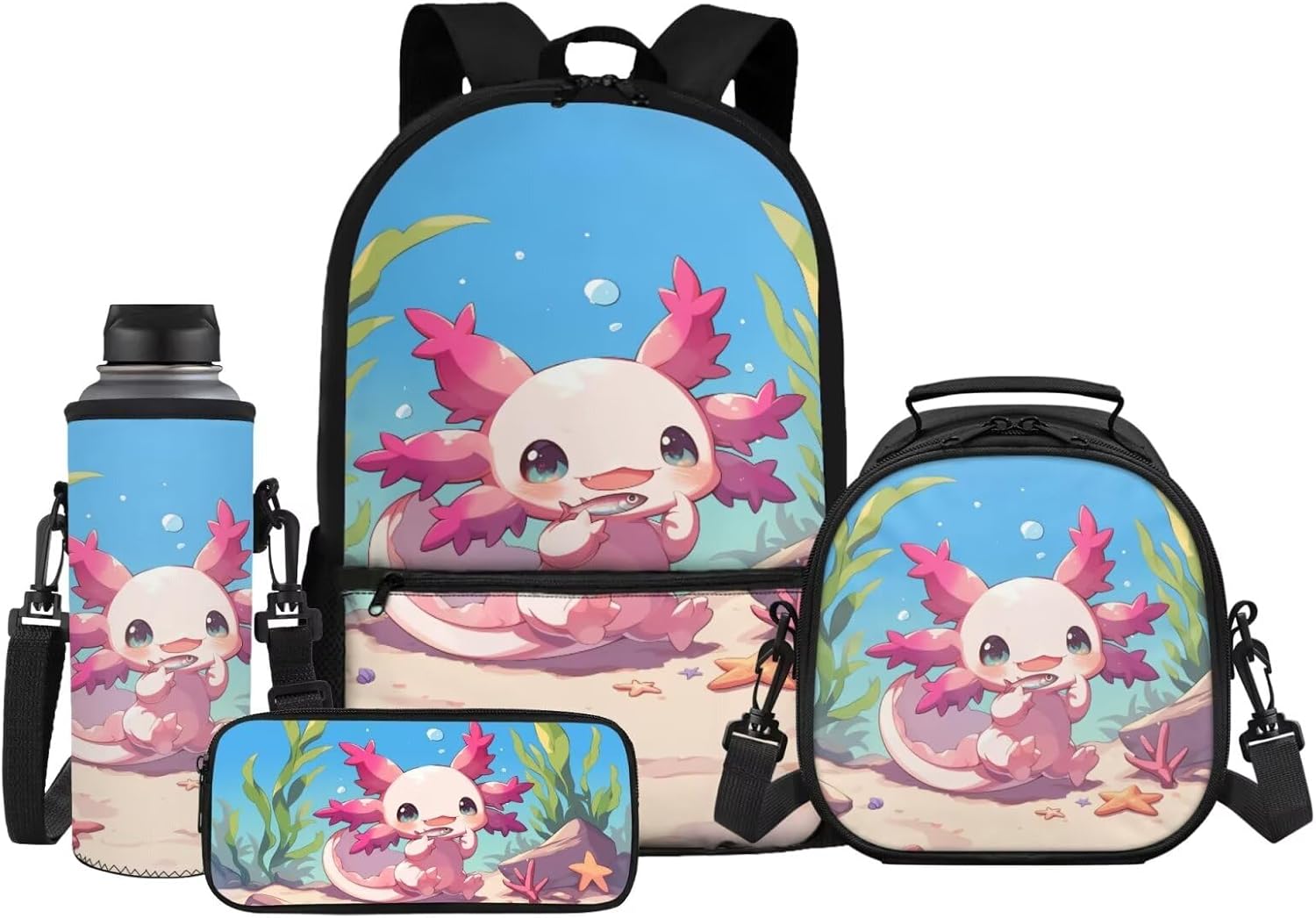 This 4-in-1 School Backpack Set is designed to grow with your child from kindergarten through middle school (ages 5-14), featuring a 17-inch backpack, insulated lunch bag, pencil case, and water bottle sleeve to meet all-day school needs. The 17.3 x 11 x 5.1-inch backpack easily holds 15.6-inch laptops and textbooks with its front pocket, while the 8.66 x 8.26 x 5.11-inch lunch bag includes a separate insulated compartment to keep meals warm. Made of lightweight, tear-resistant, and skin-friendly fabric, the set ensures comfort with an air-mesh padded back panel and adjustable ergonomic shoulder straps to reduce pressure. Vibrant 20+ playful prints—like cute axolotls and funny capybara—cater to boys and girls, making it ideal for school, travel, camping, or hiking. Perfect as a back-to-school gift for ages 3+, this durable set keeps kids organized and energized daily.