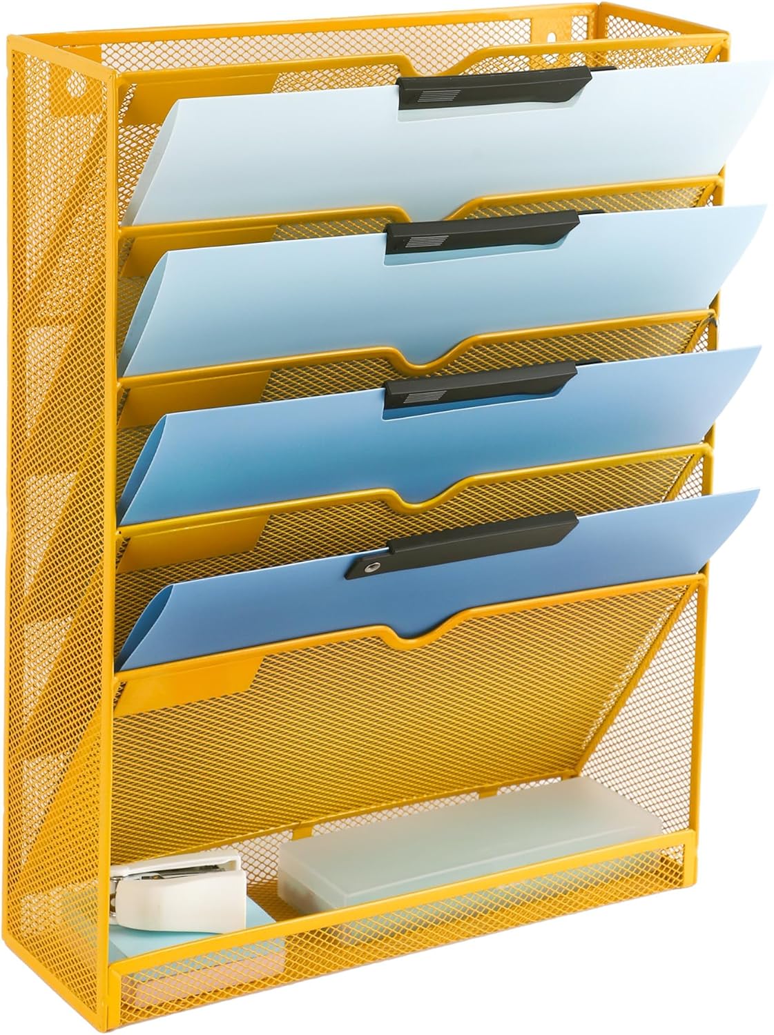 EASEPRES Magnetic 3 Pocket Wall File Organizer, White Organizer Your Files Get your papers, mail and stationery items in order by filing them tidily in our vertical mounted wall file holder. The stylish mesh arched design allows easy access to files and retrieval. Space Saving Separate your files and papers into 3 stacked tray levels with label panels allow for labeling contents of each slot so you know where all of your important paperwork and spare paper is stored. Each compartment can take letter paper sizes which is ideal for busy offices and work environments. Use our wall mount mail holder for letters, files, forms and worksheets.