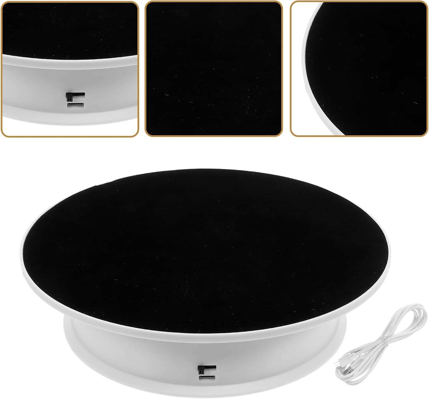 Package List 1 x turntable Features -Product Info:Rotating display stand -Material:ABS - Color: Assorted Color -Power supply:USB charge or 1pc D battery(not included) turntable stand -Maximum load:﹤5kg table display stand - Size: 20.50X20.50X5.00cm/8.06X8.06X1.97in - The motorized rotating turntable is handy and easy to operate stably and safely electric turntable display. - Widely used in theme exhibition, window display, product display, photograph show, cube display, and advertising turn table for displaying. - It comes with the good bearing capacity, which is practical for your display demand rotate display stand. - Perfect for display Jewelry, watch, digital product, shampoo, glass, bag, collectibles, etc electric rotating display stand. - Made of premium ABS material, it is to use and works great.Goods Descriptiontable display stand This is a stand that will bring you a better jewelry display experience.electric turntable display stand This is a jewelry display stand made of ABS material.display turntable motorized Reasonable structure, scientific and practical, rotatable design and suitable display space allow you to easily display your watch or other jewelry.display turntable You can use it to better display and decorate your items on display windows, shelves and counters