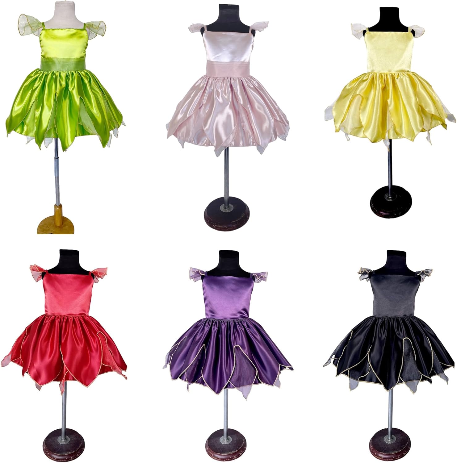 Carefully hand stitched together with the upmost care, this dress will make the perfect unique Halloween costume! Beautifully handcrafted Tinkerbell inspired dress made out of satin; A sleek satin top with spaghetti straps and attached sheer sleeves. The front bodice has a waist belt that does not extend to the back and can be decorated with your own flower. Zipper can be found at the back of the bodice. Knee length skirt made out of sheer and satin strips of fabric that creates a fairy-like silhouette. Under the skirt is one layer of lining with an additional layer lining with crinoline attached at the bottom to add extra puffiness. It is great for any occasion: birthday, graduation, holiday or photo shoot. *Mannequin has petticoat to show detail. !PETTICOAT NOT INCLUDED!
