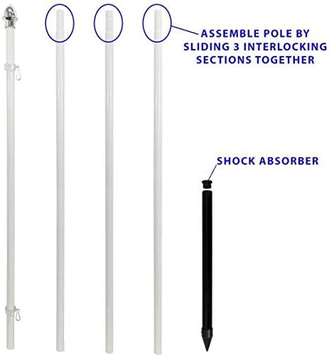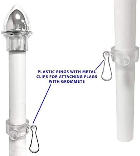 Measures 13 feet long x 1 inch diameter Aluminum Pole breaks down to 4 pieces for easy assembly and storage Silver ball top Adjustable pole clips accommodates multiple flag sizes and types (flag not included). Includes black PVC ground spike