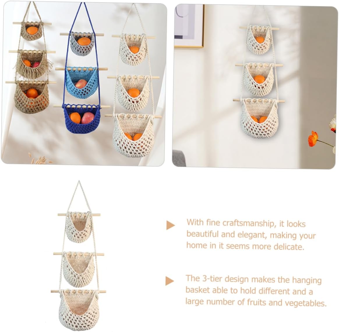 Package List 1 x Hanging Fruit Basket Features -Material:Cotton rope three-layer fruit basket -Color:Beige Hanging Vegetable Basket -Size:90.00X33.00X10.00cm/35.37X12.97X3.93in kitchen accessories - A suitable present for housewarming, Thanksgiving, Christmas and other occasions that present Kitchen Hanging Basket. - Wide application, work great for fruits, vegetables, and much more, easily meet your different needs hanging fruit basket kitchen. - Hanging Fruit Basket also can be a wall art decor to embellish your space, add a textured and elegant ornament to your multi-purpose basket. - The hanging rope on the hanging basket makes it easier and more convenient for you to anywhere you want fruit storage rack. - The 3-tier hanging basket has a large capacity and can help you to classify fruits and vegetables Household Storage Basket.Goods Descriptiononion storage basket This is a 3 tier Hanging Fruit Basket for vegetables, fruits or other dry foods.hanging fruit vegetable basket and sturdy for use, provide a long serving life.onion potato storage basket It can not only provide good air circulation for fruit and vegetables but also help to counter space, bring you much more conveniences
