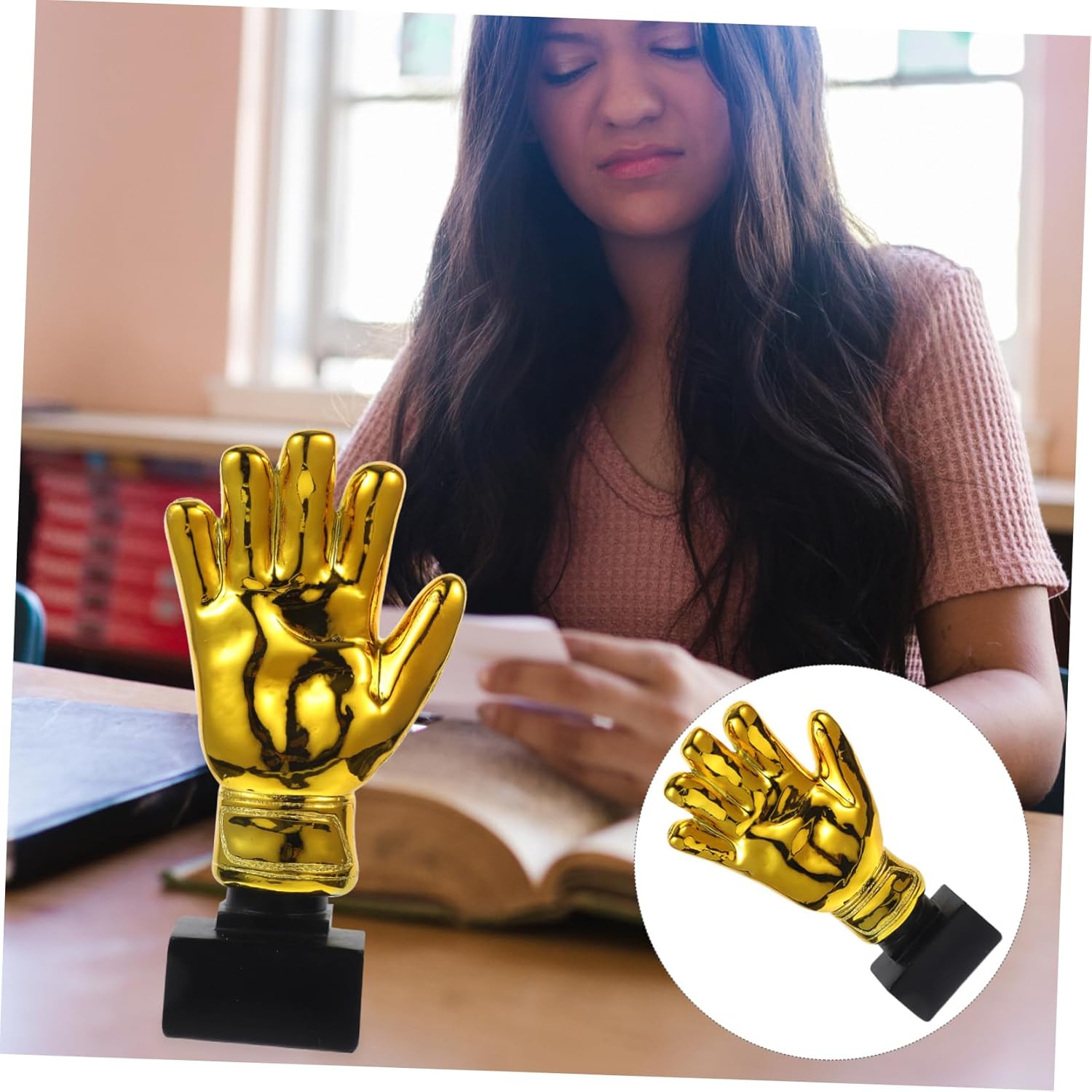 Package List 1 x Decor Features - Material: resin soccer championship trophy. - Color: golden tiny trophy. - Size: 26.50X13.00X6.50cm/10.41X5.11X2.55in trophy award - Gloves shape trophy to award the best goalie in the match golden soccer trophies. - Suitable for kindergarten, school, company, and etc participation trophy. - as game prizes or party favors cheer awards. - Plating shiny trophy, a representative of honor and great efforts goalkeeper soccer trophy. - Made of material for lasting use goalkeeper award trophy.Goods Descriptionaward trophies It is a great party and game for in sports day or other school matches. trophy This is a trophy.ceremony trophy The award trophy is a fabulous stimulate winner.soccer trophy cup This item is made of material, which is durable for lasting use