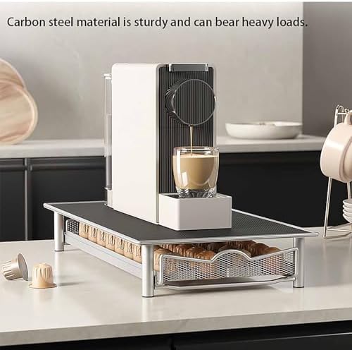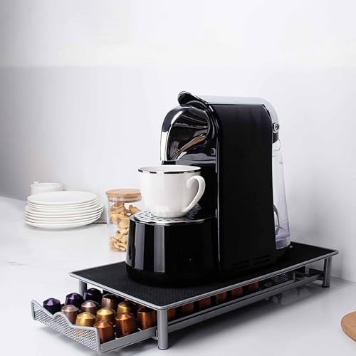 Product Description Transform your coffee experience with our pull-out coffee pod holder, designed to provide organized and convenient storage for a variety of coffee capsules. This versatile holder features an adjustable interior lever that accommodates multiple pod sizes, ensuring compatibility with various brewing systems, from single-serve machines to traditional coffee makers. The structured layout allows you to categorize pods by flavor, type, or frequency of use, helping to keep your countertops tidy and easily accessible. Imagine starting your day with a perfectly brewed cup of coffee, knowing that your favorite pods are neatly organized and within reach. This product is perfect for coffee enthusiasts who appreciate a streamlined brewing setup, combining practicality with a sleek, modern design that fits seamlessly into any kitchen decor. Made from durable metal, it's built to withstand daily use while maintaining its elegant appearance. Measuring 15.7" D × 7.9" W × 3.1" H and weighing 3.52 lbs, this pull-out coffee pod holder is compact yet spacious enough to store a significant number of pods. No assembly is required, making it a hassle-free addition to your kitchen. Enhance your coffee-drinking ritual with this essential accessory that not only saves space but also elevates your brewing experience. This coffee pod holder is a must-have for anyone looking to optimize their coffee station while enjoying the benefits of organized storage. Package Includes: 1 × Coffee Pod Holder Shelf